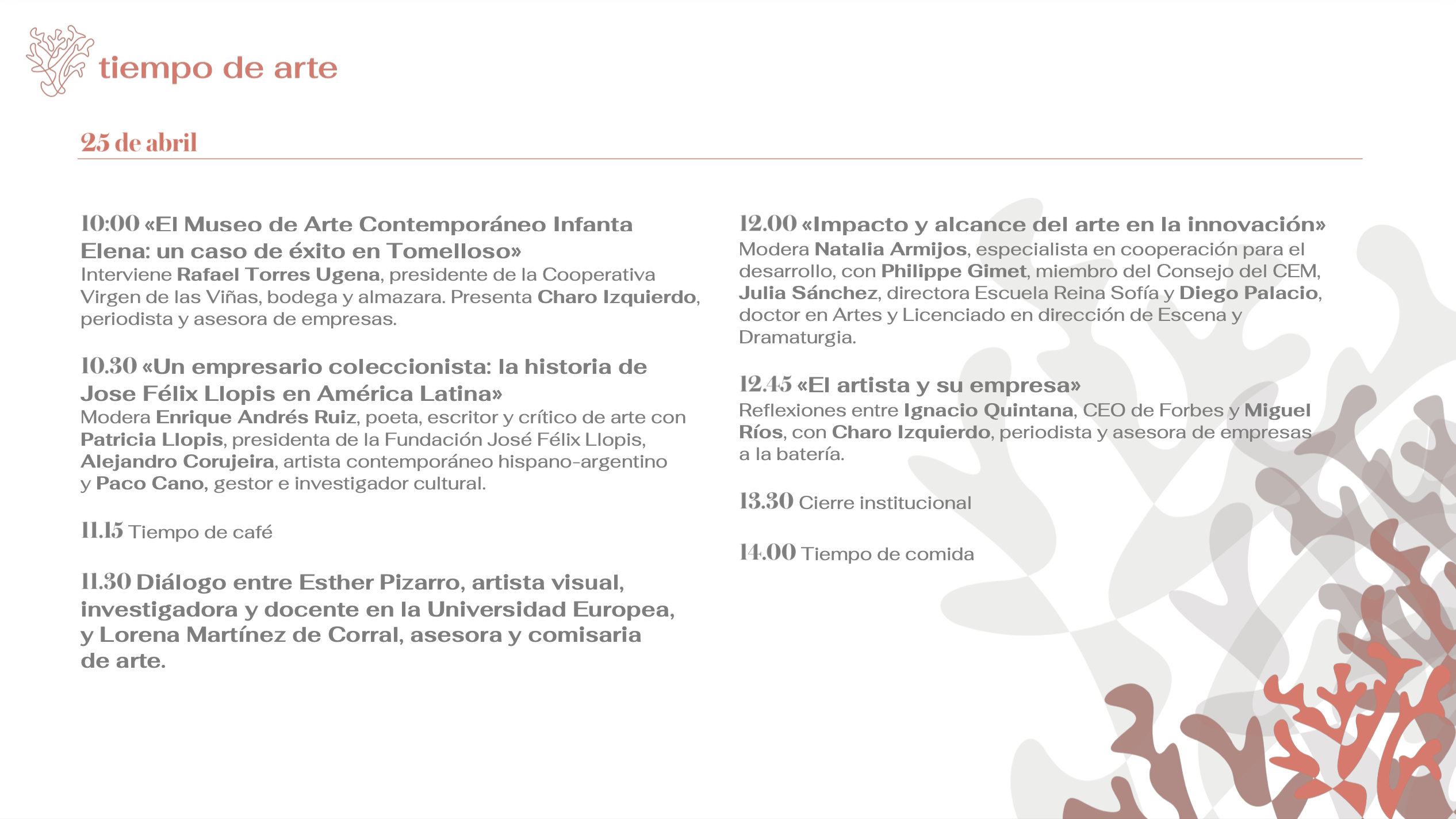 Todo un privilegio participar en el III Congreso Internacional Tiempo de Arte 2024, en un diálogo con Lorena Martínez de Corral, el 24 de abril a las 11.30 hs, en el Centro Botín de Santander.