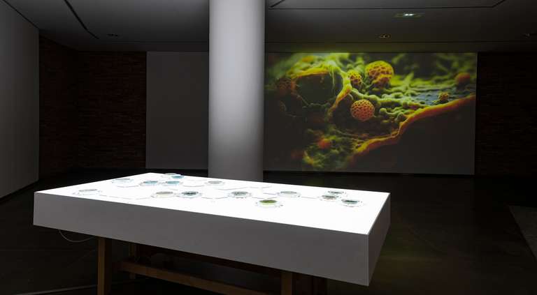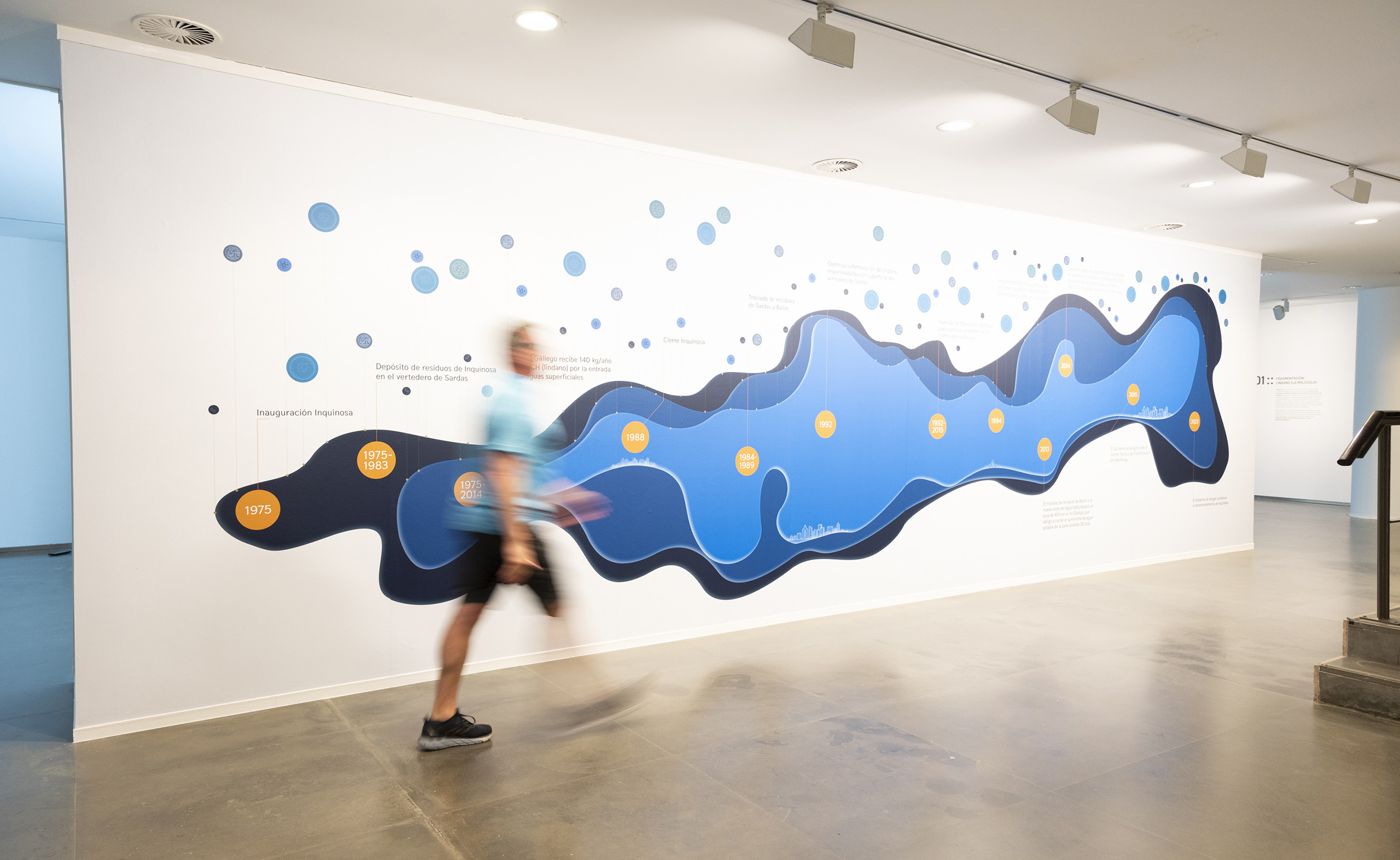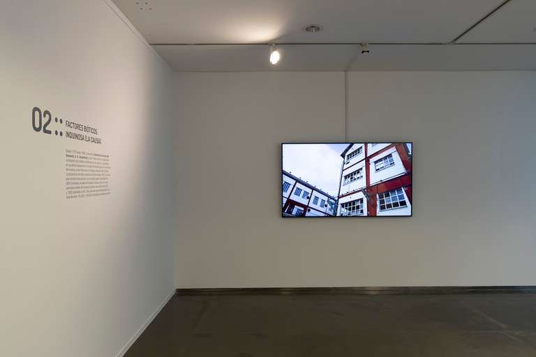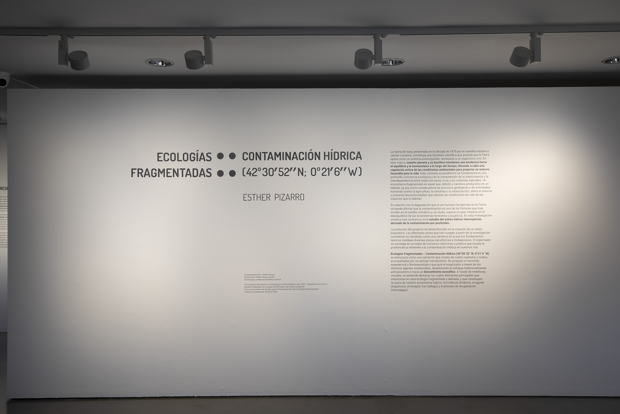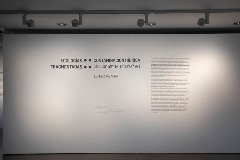 Ecologías Fragmentadas :: Contaminación Hídrica (42º30´52´´N; 0º21´6´´W) se estructura como una narración que consta de cuatro capítulos o nodos, acompañados por un epílogo introductorio. Se propone un recorrido experiencial y fenomenológico que guía al espectador a través de los distintos agentes involucrados, desplazando el enfoque tradicionalmente antropocéntrico hacia un biocentrismo ecosófico. A través de metáforas visuales, se pretende destacar los cuatro elementos principales que interactúan en esta ecología fragmentada y alterada, y que construyen la trama de nuestro ecosistema hídrico: la molécula (lindano), el agente (Inquinosa), el receptor (río Gállego) y el proceso de recuperación (microalgas).