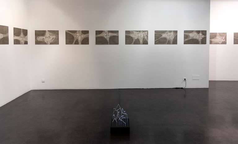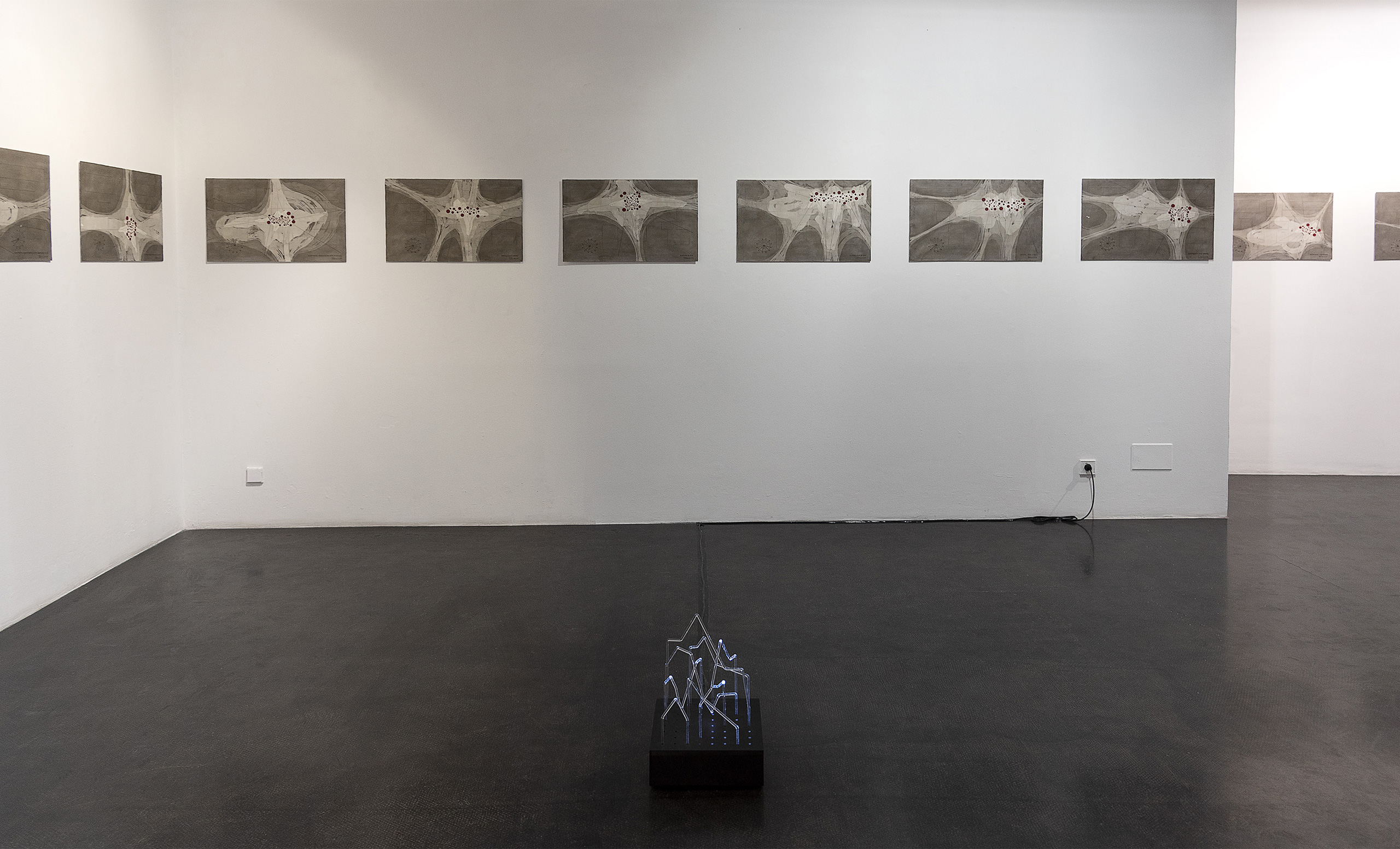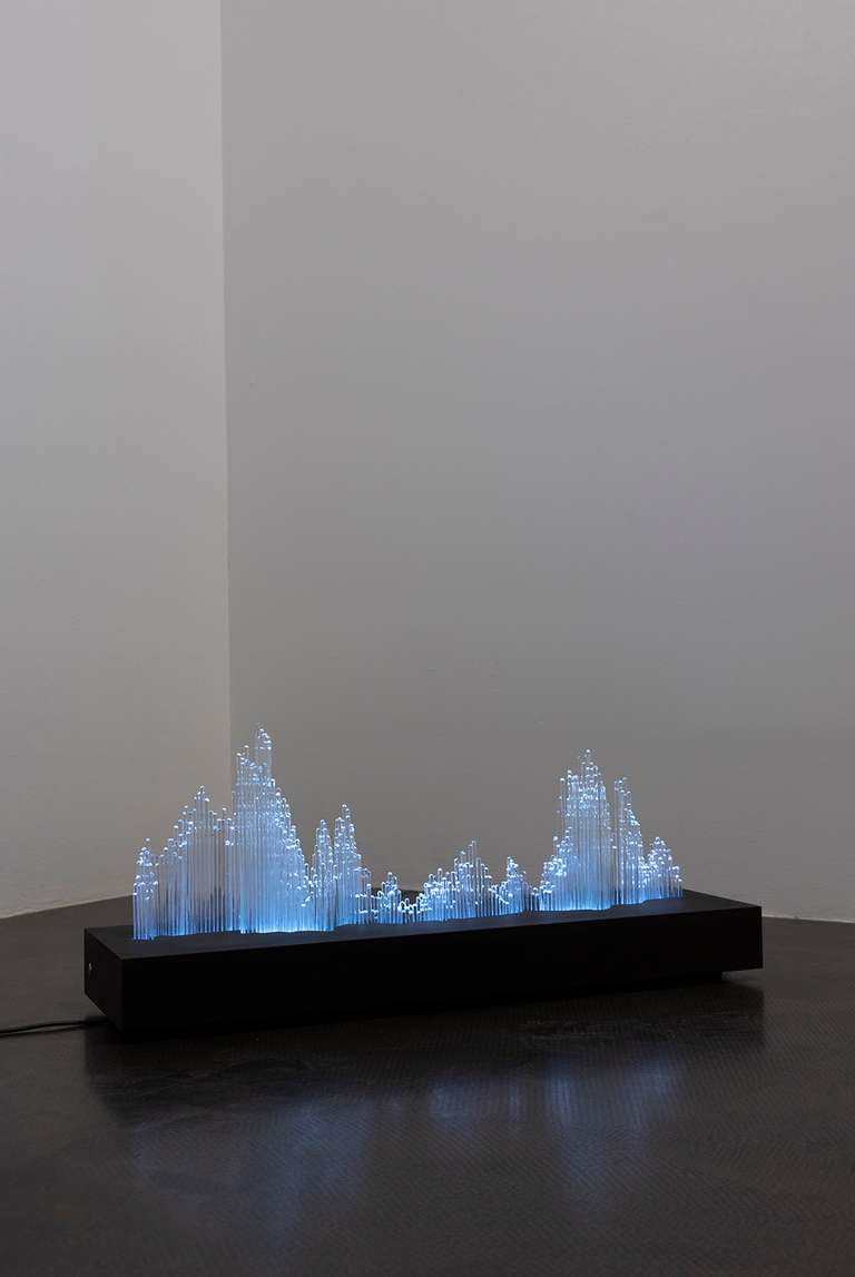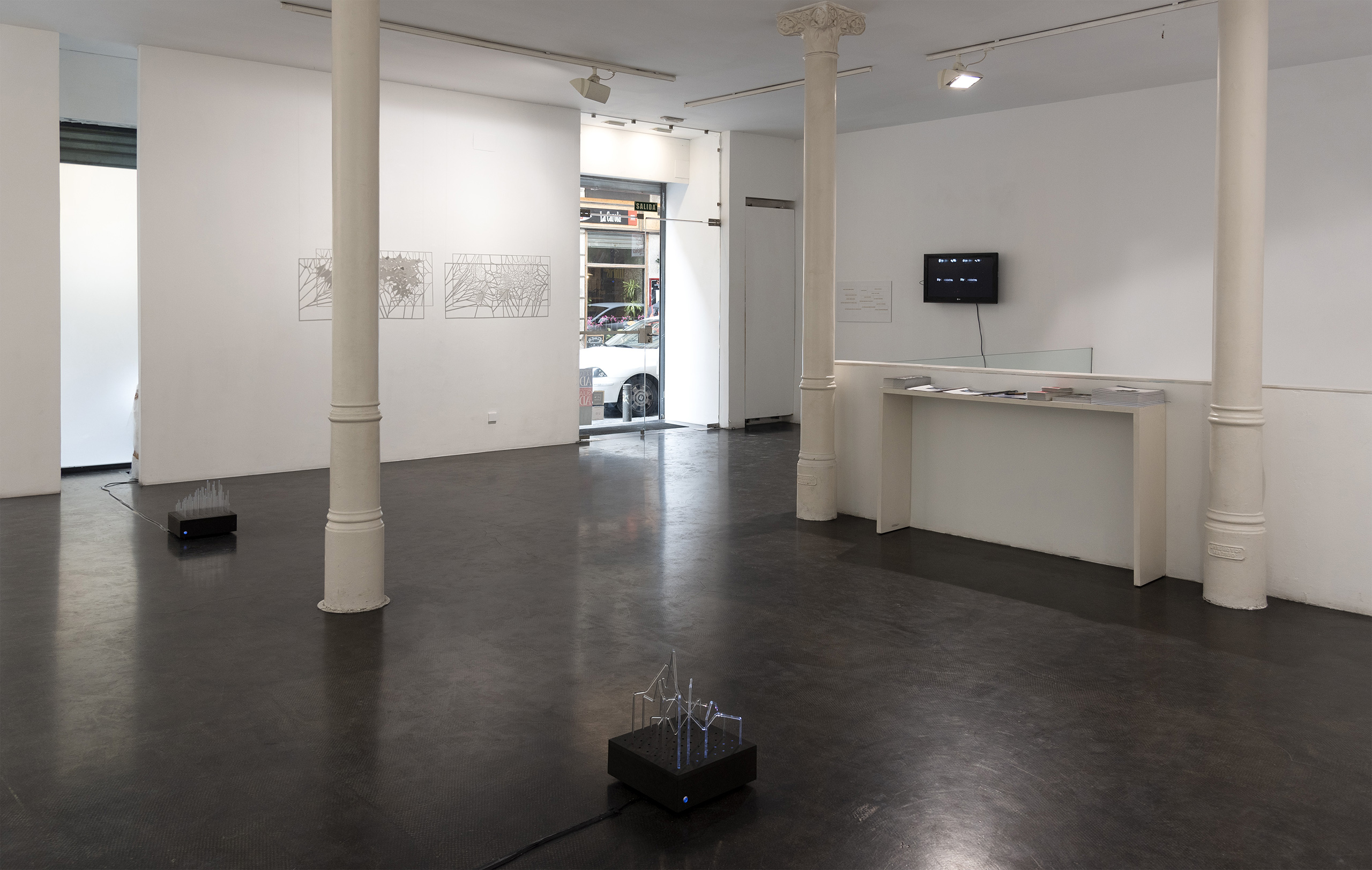 Se completa la muestra con esculturas de pequeño y mediano formato, realizadas en varilla de borosilicato con programación lumínica. Basadas en datos de incendios forestales, pero esta vez descontextualizadas de su espacio geográfico, formulan miradas dinámicas basadas en la refracción de la luz de gráficos y diagramas abstractos. Un ejercicio metodológico de las infinitas posibilidades que ofrece la visualización de la información basada en datos.