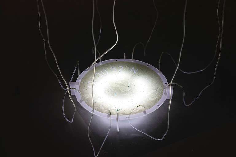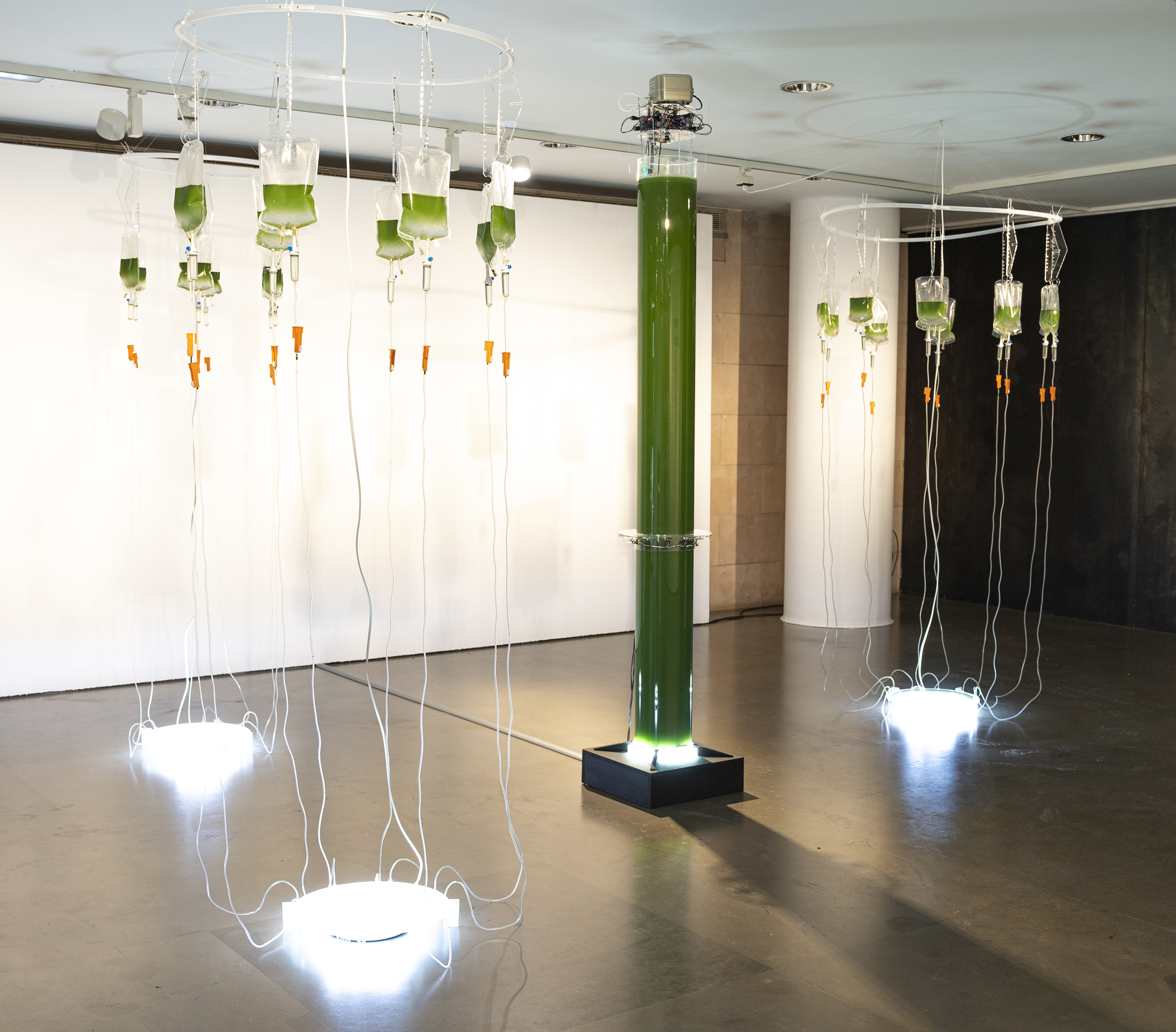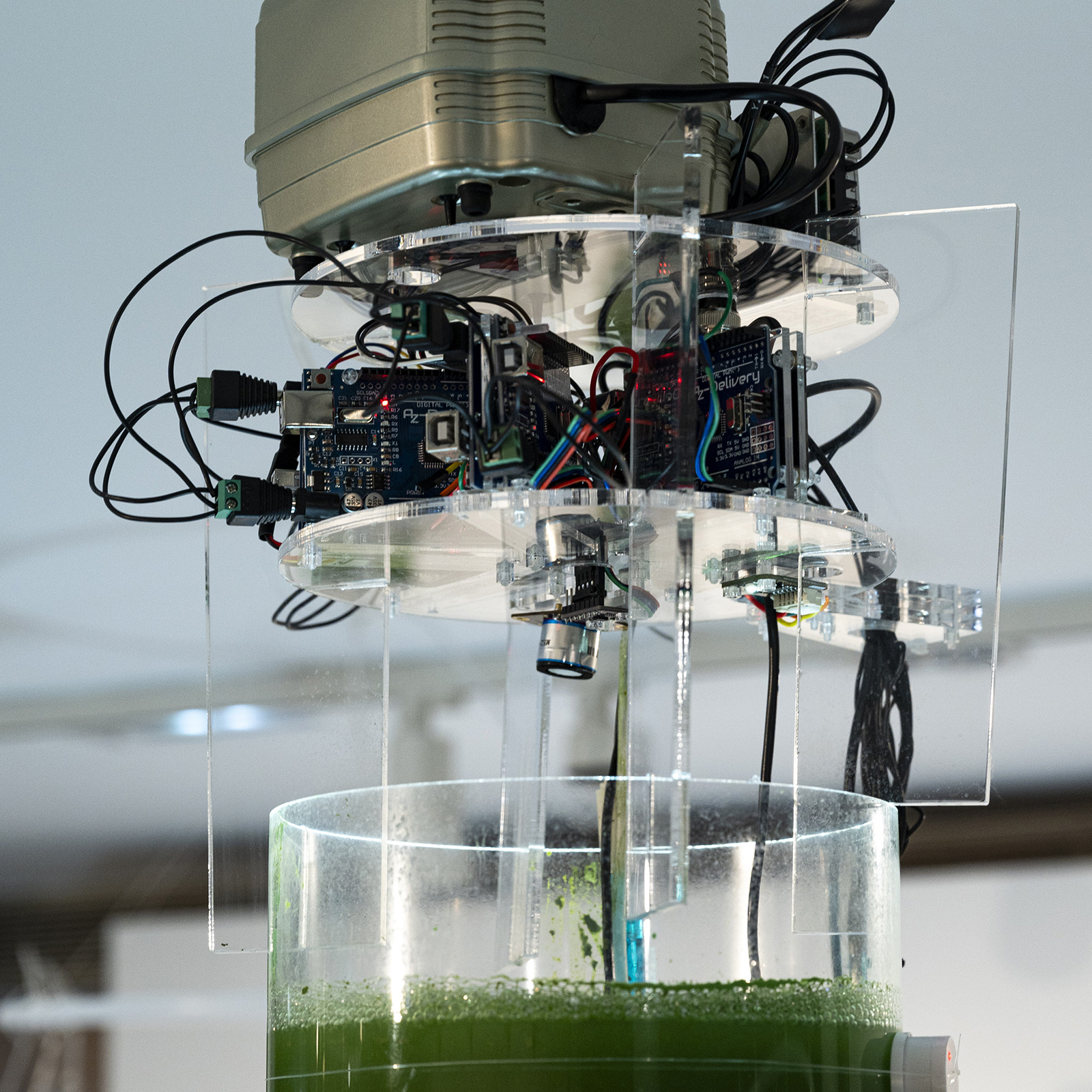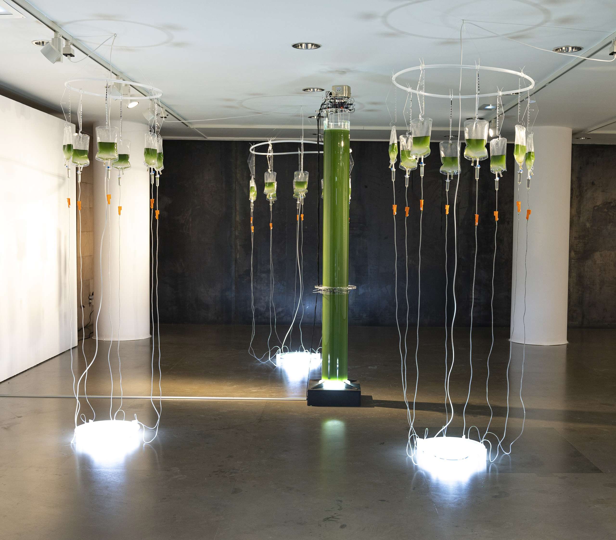 BioAlgaeLab Interspecies is conceived as a co-creation between human and non-human organisms, which understands the artistic work as an unstable, changing and mutant entity. This helps us to explore the expressive capacity of both its materiality and its horizontal and biocentric production process. A polyphonic ensemble of multiple temporalities emerges with a prominent protagonist: microalgae.