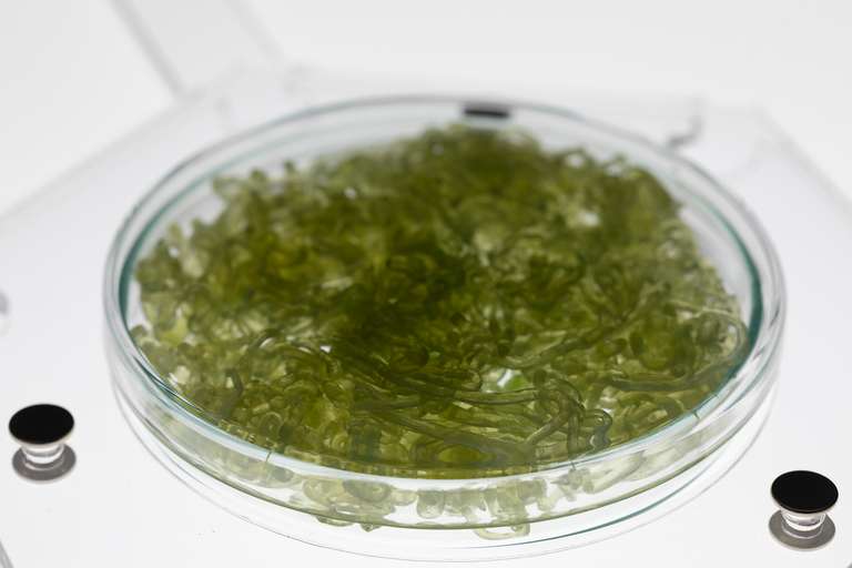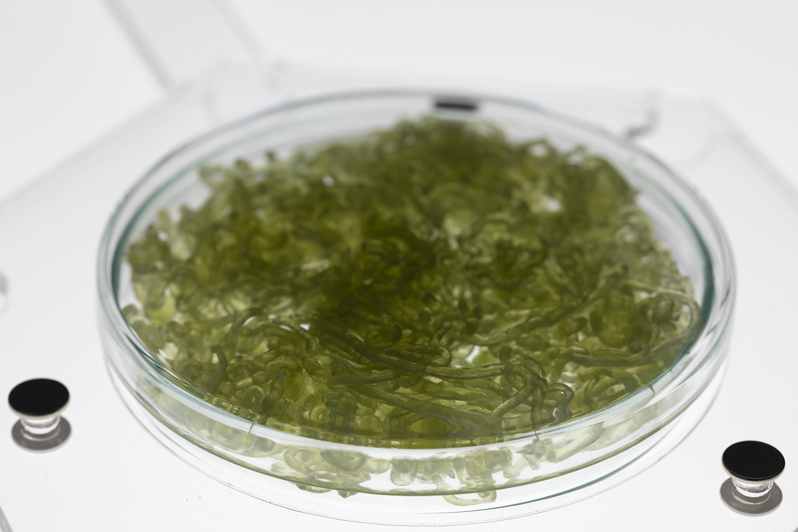 Biomaterials with spirulina biomass, Petri dishes, acrylic, light box