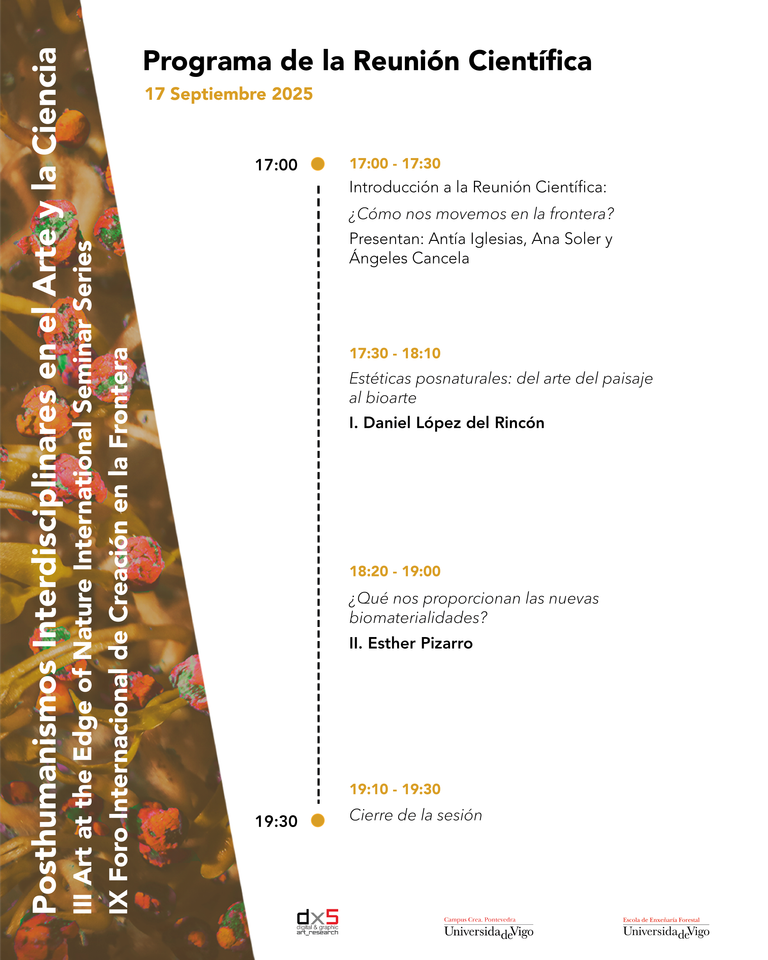 On September 17 and 18, 2025, the conference “Interdisciplinary Posthumanisms in Art and Science” will take place at Casa das Campás (Pontevedra), as part of the III Art at the Edge of Nature International Seminar Series and the IX International Forum on Creation at the Frontier. Many thanks to Antía and grupodx5 for the invitation.