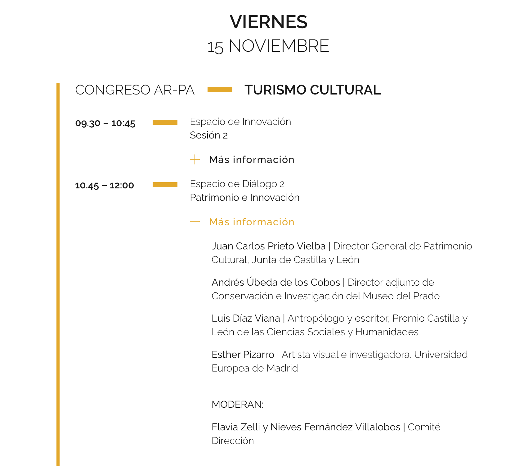 📅 This Friday, November 15, 2024, I will be participating in the AR-PA 2024 International Congress on Cultural Tourism, under the scientific direction of Darío Álvarez and Miguel Ángel de la Iglesia. Organized by the LAB.PAP (Architectural, Heritage, and Cultural Landscape Laboratory) of the University of Valladolid and the Department of Culture, Tourism, and Sports of the Regional Government of Castile and León, the congress will be held at the Valladolid Trade Fair Congress Center on November 14, 15, and 16.