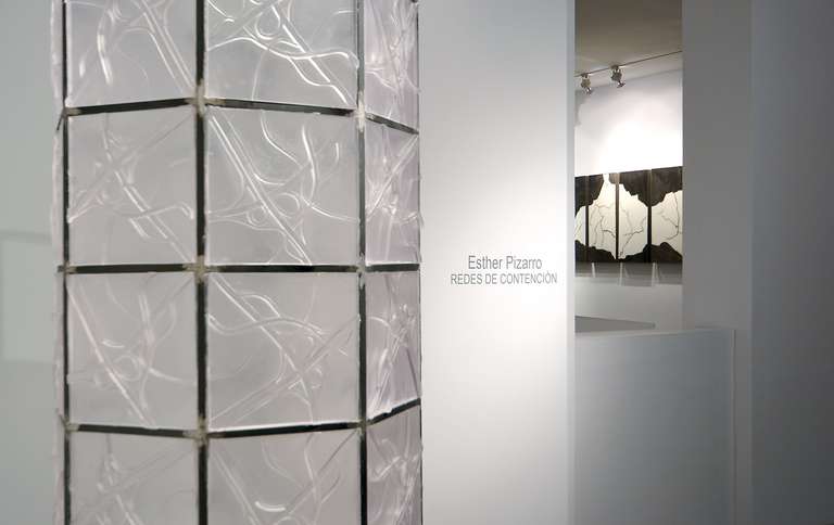 One of the new pieces, halfway between sculpture and architecture, Redes Cristalinas, has a clear structural vocation. Based on a regular octahedron, it alternates hollows with planes that house inscribed topographies. The human scale invites the viewer to surround the piece, but the artist wants the viewer to enter it, to look inside and discover the play of opposites (inside and outside, flat and empty, gravity and lightness), the qualities of the material and the topography inscribed in it. Esther Pizarro today proposes these topographies using different strategies and materials. Although she seeks absolute control over the material, in the pieces made with waxes and resins, transparent polyesters and felts, she admits imprecision because the motifs she represents are imprecise.