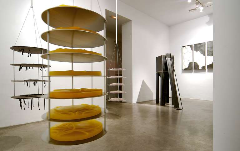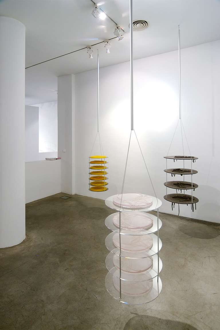 Esther Pizarro has momentarily moved away from following the urban progression of cities and now stops at their margins, at what has not yet been conquered by the furore of construction. It is a periphery that is by no means a passive place; on the contrary, it is where the great communication routes that surround the cities converge, ring roads that criss-cross each other to form complex junctions. In the unstable balance of cities, these vibrant tangles of motorways are, in their resounding and imposing presence, unquestionable certainties. And it is here that the artist finds the motifs that underpin this latest series. They are architectural elements that have fallen into disuse, such as reservoirs or large extraction pipes. There is an interest in rescuing structures that, once converted into sculptures, once again agglutinate the very context in which they are inscribed, as if the setting and its raison d'être were the foundation of the work itself. Because the allusions to these nodes of communication in which they are located are present in one way or another in all the pieces in the series. The topographies of these sites are not new. As early as 1997, Esther Pizarro made metal boxes with a clear minimalist air, inside which similar images could be seen. The reference to these places is now inscribed on the exterior of some of these towers. And although these new vertical structures may seem to be the result of a drastic change on the part of the artist, they condense all the elements that have been the backbone of her work up to now. They are simply the result of a plastic reworking absolutely full of logic and sense in which everything seems to fit together without stridency or artifice.