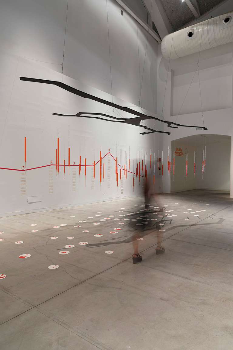 The audience is introduced into a diagrammatic cartography, based on truthful data, and constructed through the suspension of a fragile and tense structure, which addresses the vulnerability, fragility and harshness of the female condition.