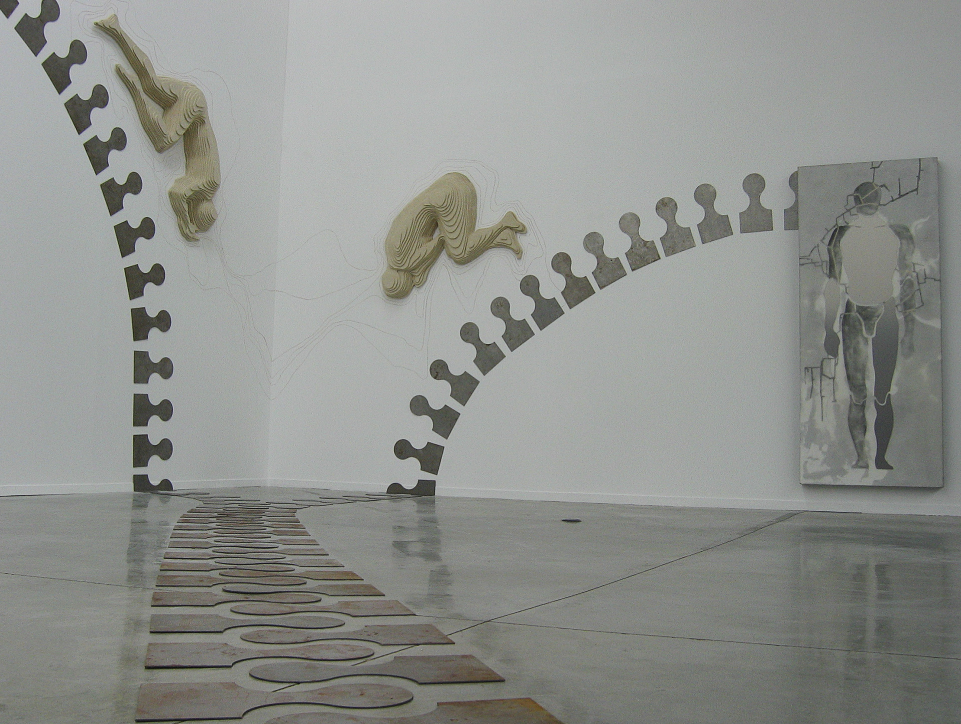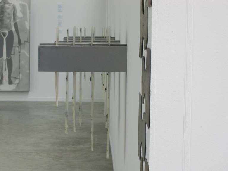 The body is understood in this work as an imagined topography, but the gaze, far from being bucolic and conciliatory, is defined by its "silent" aggressiveness. The city, in its advance, eats away at the landscape, and its most evident metaphor is that of roads and motorways that open the way to make space habitable, paying the price of opening wounds in the earth with their advance. These same "wounds", these voluntary channels, are metamorphosed in Esther Pizarro's work into zips, as the artist makes use of her double conception of an instrument that opens and closes and, therefore, that offers and hides; that shows, but also hides.