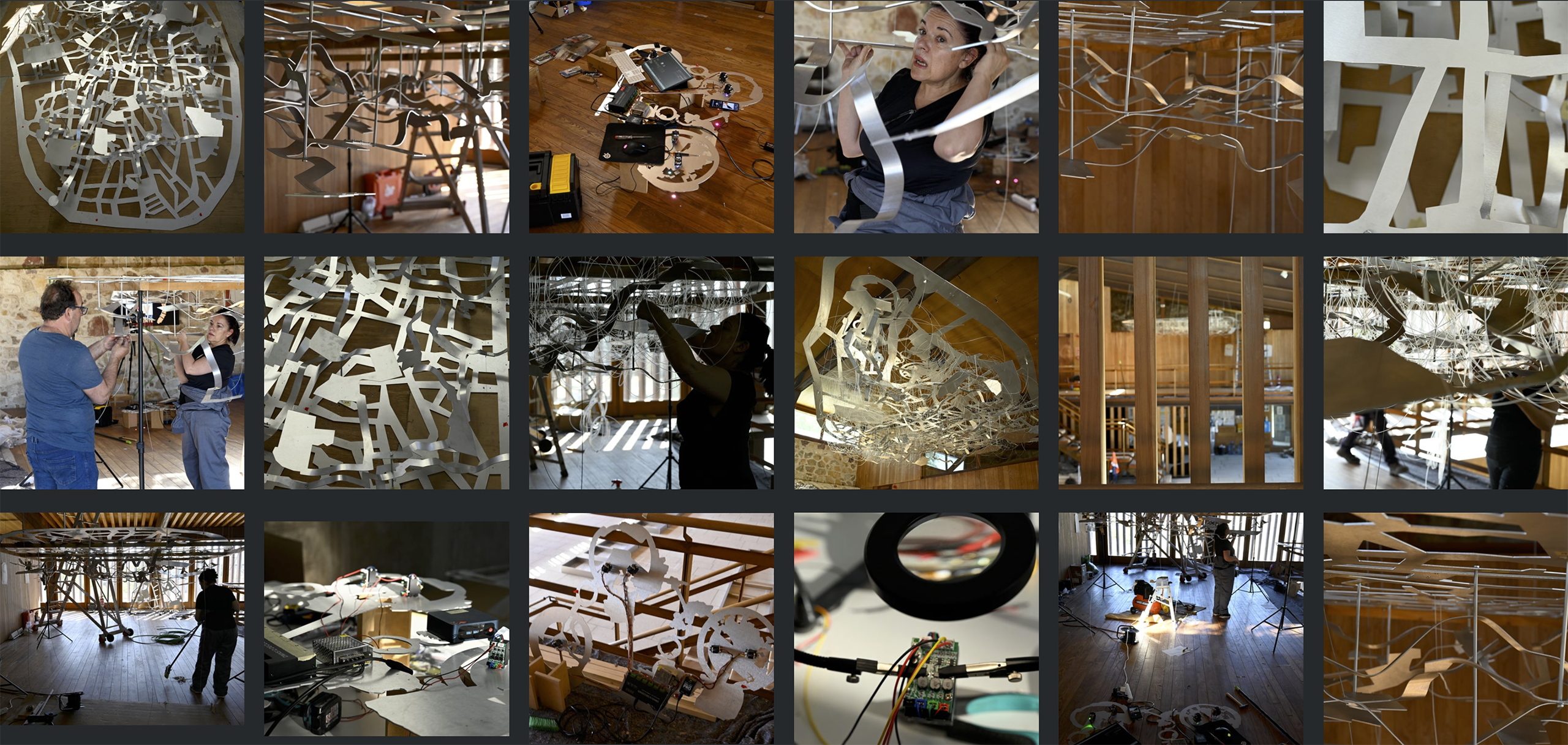 The installation is completed by a three-dimensional network of optical fibers that connect the various levels and deposit points of light in key heritage sites. Luminous animations guide visitors along the pathways, using a color-coded system that acts as a timeline. This interplay of lights reveals invisible constellations, tracing the passage of time and its imprint on the city’s configuration.