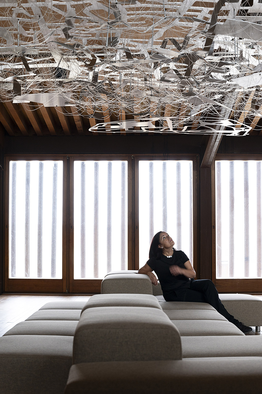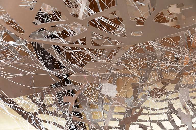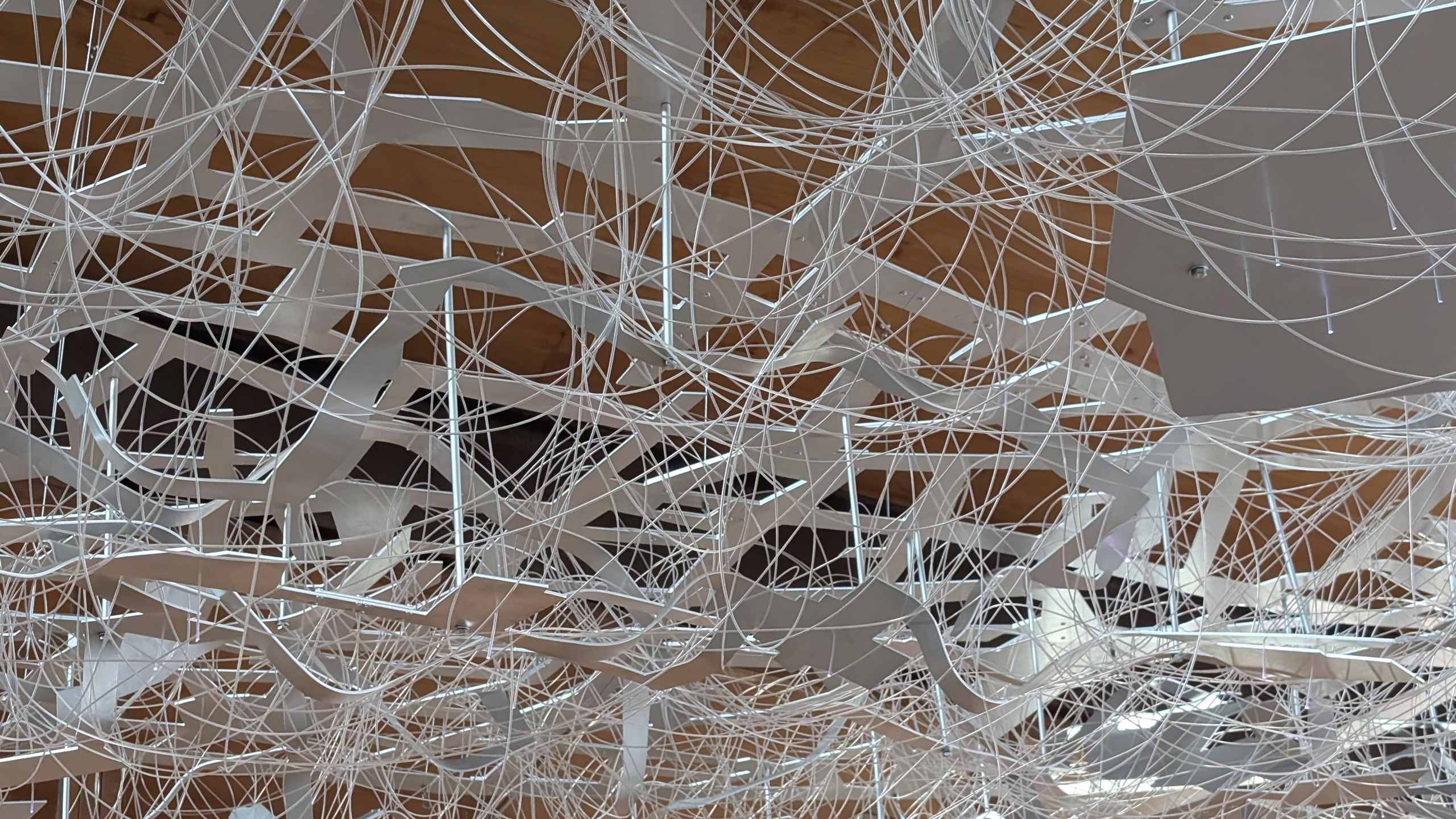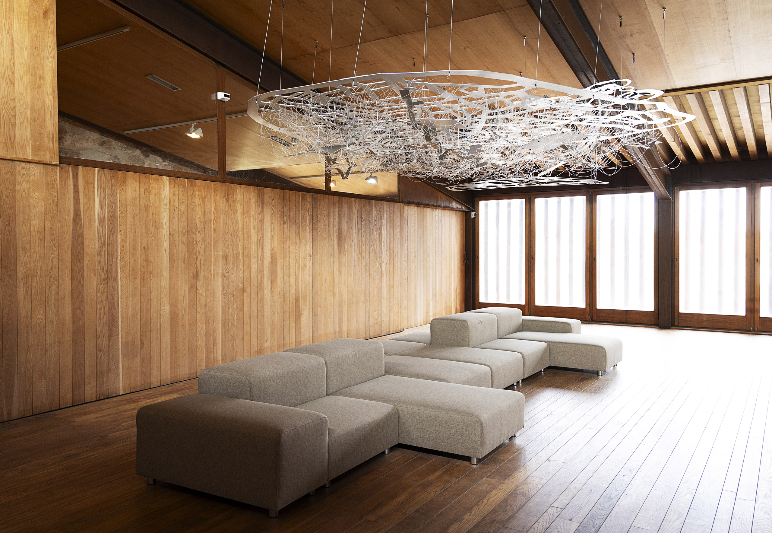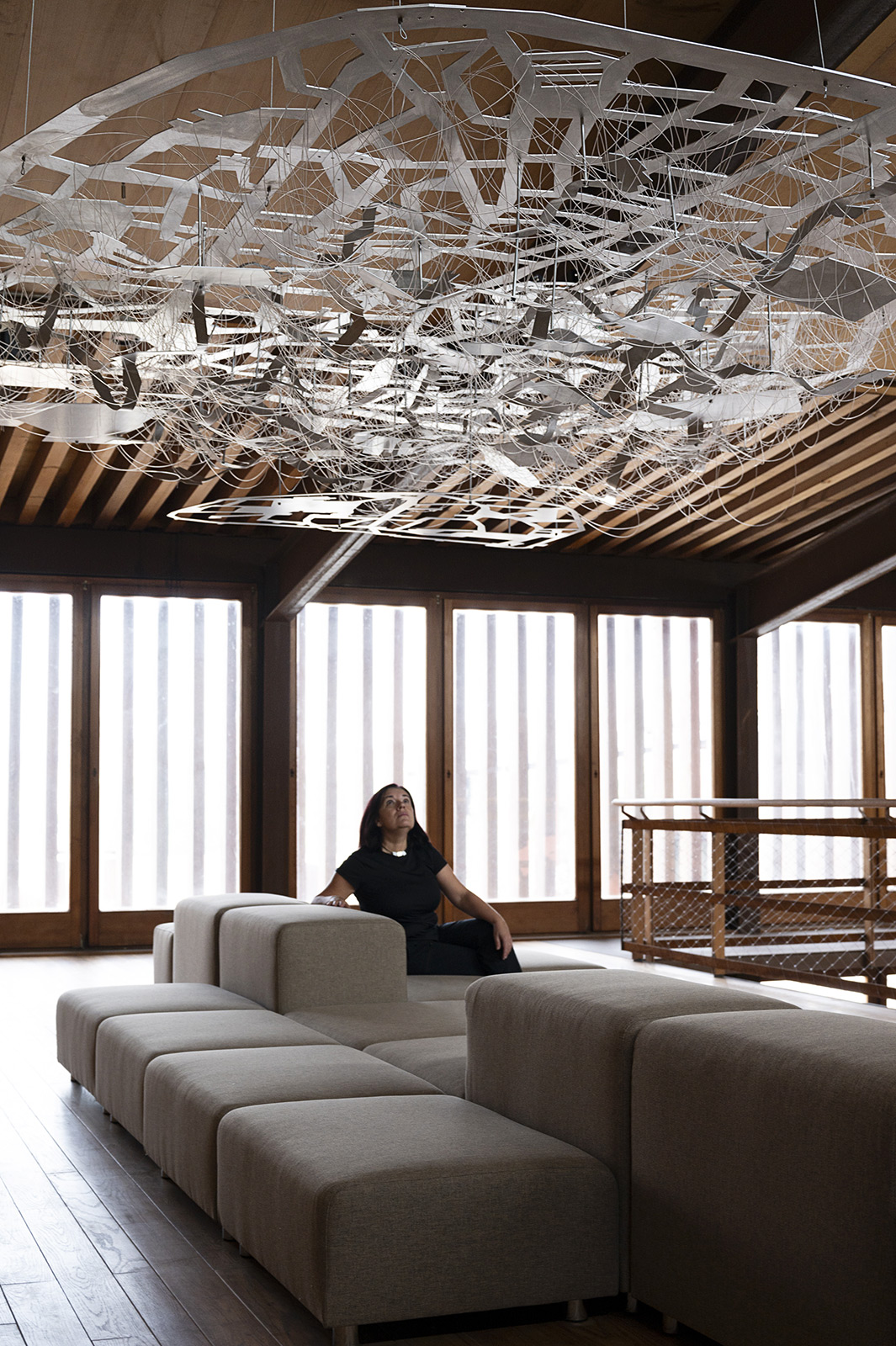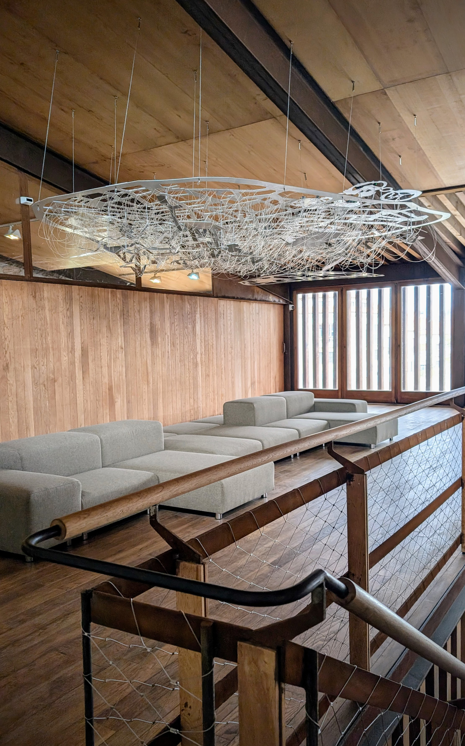 Below lies contemporary Salamanca, depicted as a flat, tensioned metallic framework following the current urban layout of the city’s main streets and avenues. Further down is 15th-century Salamanca, organized through five primary routes: municipal, palatial, ecclesiastical, conventual, and educational. These routes intersect dynamically, forming a rhizomatic structure that evokes a fluid topography. At the lowest level lies 12th- and 13th-century Salamanca, characterized by the Cerca Vieja, the ancient city wall that defined the central core and laid the foundation for the modern city.