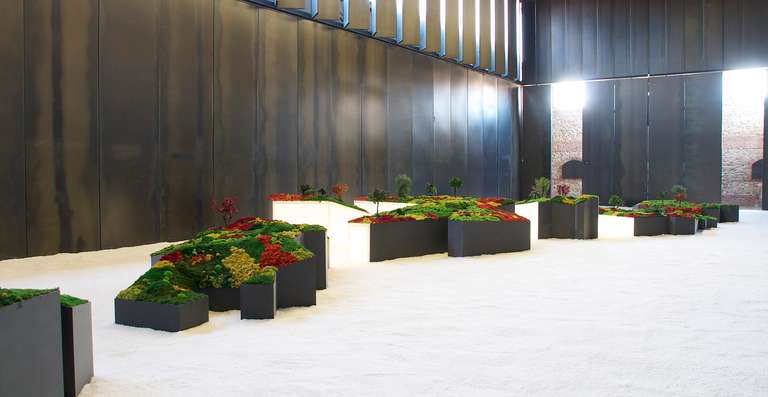 The Japanese garden is a microcosm of nature, whose origins go back to 6th century China, whose culture penetrated the country with Buddhism and the kanji script through the trade routes that opened up between the two countries. The closest contemporary experiences of the Japanese garden are produced in the West through literature and in particular Yukio Mishima's "The Golden Pavilion" (kin / gold, kaku / kernel and ji / temple). Although the different "Japonisms", which made Japan better known in Europe between the 19th and the first half of the 20th centuries, also introduced images and descriptions of this space, where time manifests itself cyclically from life to death and back to life again; or from nothingness and emptiness to the existence of the world, whose ephemeral character demonstrates its fragility. Replicas of the Japanese garden abound in the West; there are many cities in Europe, the USA, Latin America and Australia, which have made reproductions of this type of creations, for their representativeness, to stage the aesthetic codes that are at the origin of the production of this space crossed in all its states by time, which is organised by the clock of the seasons.Why a Japanese garden? The proposal presented in Nave 16 raises the possibility of understanding this space as a landscape laboratory in which the approach to a model that lends itself to the comparative reading of paradigms marked by the weight of tradition and its constant reinvention by masters of Ikebana, landscape designers and architects in the 20th and 21st centuries is enhanced. The relevance of the Japanese garden is due to the constant updating of the traditional aesthetic keys that associate beauty and death, nothingness and being, emptiness and its negation, by landscape designers, architects and artists such as Yukio Nakagawa, Tadao Ando, Mirei Shigemori, Masatoshi Takebe, Kengo Kuma, Toyo Ito, Kazuyo Shejima and Ryue Nishizawa, to name but a few, whose contributions continue to demonstrate its influence. The Japanese garden is a replica of the natural landscape, ordered according to codes, and a cultural construction that encourages an exploration of concepts and symbols shared in ancient times thanks to the silk and bamboo routes and the current social networks that transport information at a speed that imitates simultaneity in time, erasing distances. Esther Pizarro's intervention is marked by the exploration of this microcosm on the map of Japan, understood as a country of islands or isles, respecting the rule according to which shakkei or framing is the first condition for the garden to exist as such. Thus, the political division that establishes the eight regions, the forty-seven prefectures and the more than six thousand islands that make up the Japanese archipelago is symbolically represented in the constructions made by the artist, who articulates the "path of philosophy", by virtue of the principle that the Japanese identify as wabi-shabi, which annuls oppositions, understanding that everything is contained in everything.