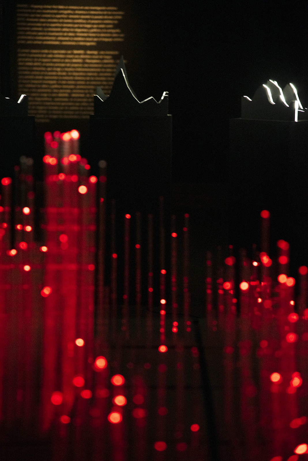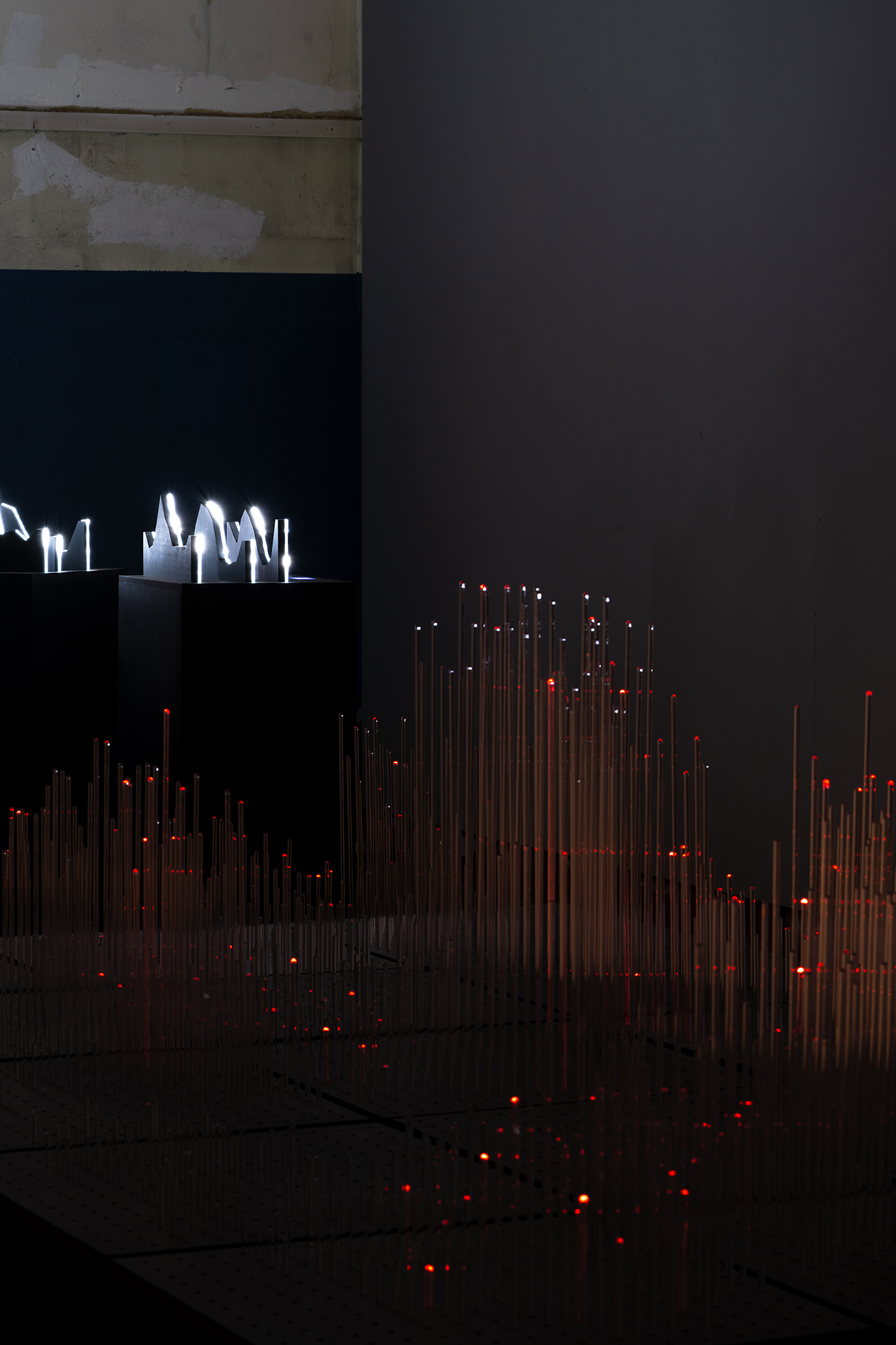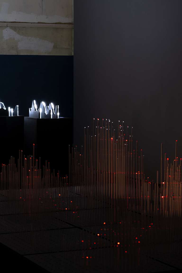 The exhibition is articulated around three axes. The first space welcomes the viewer with [MAFD] :: Burning, an interactive video mapping in real time, where the presence of each individual will create a visual carpet of generative fires; traced from the physicality of each body on the surface of the room.