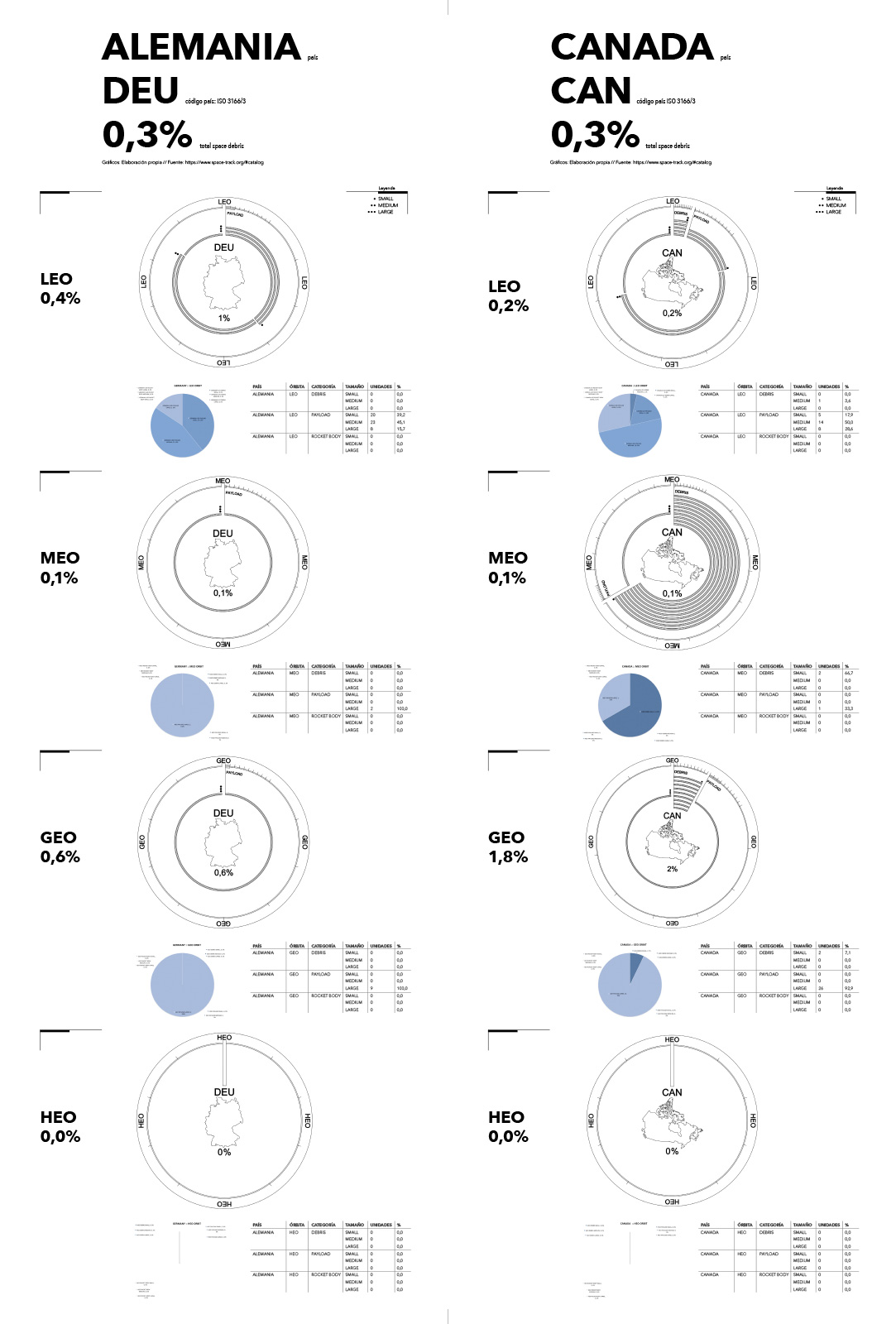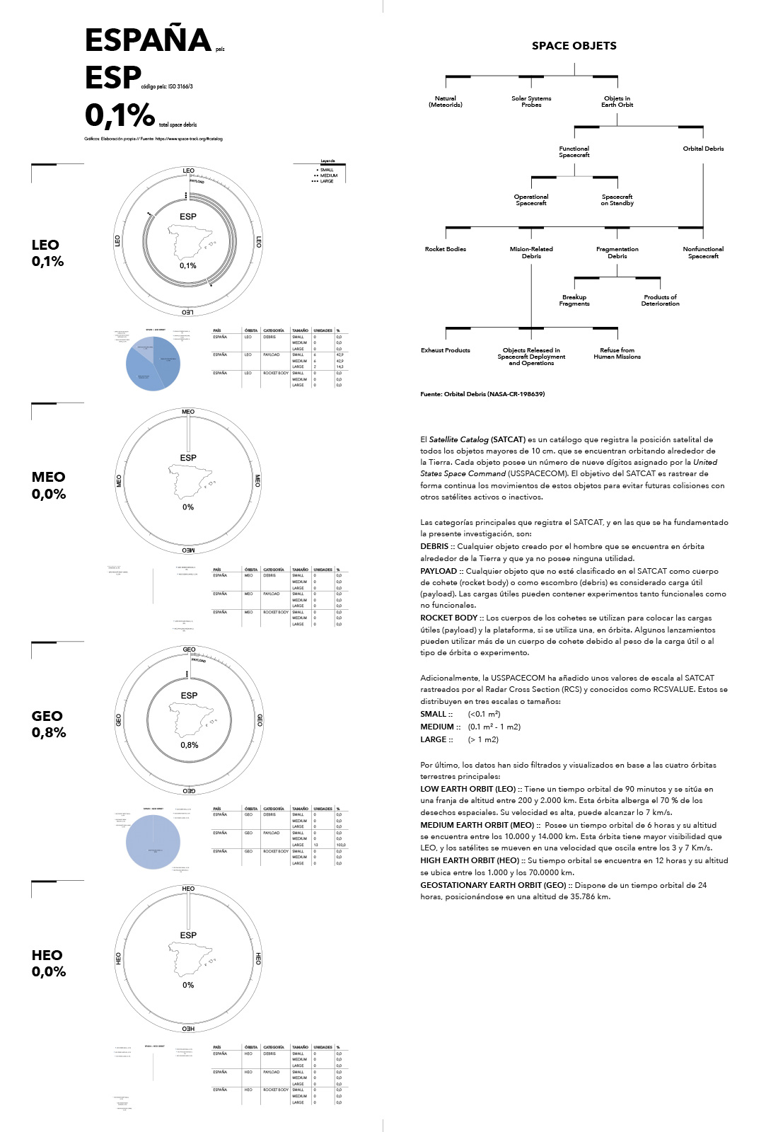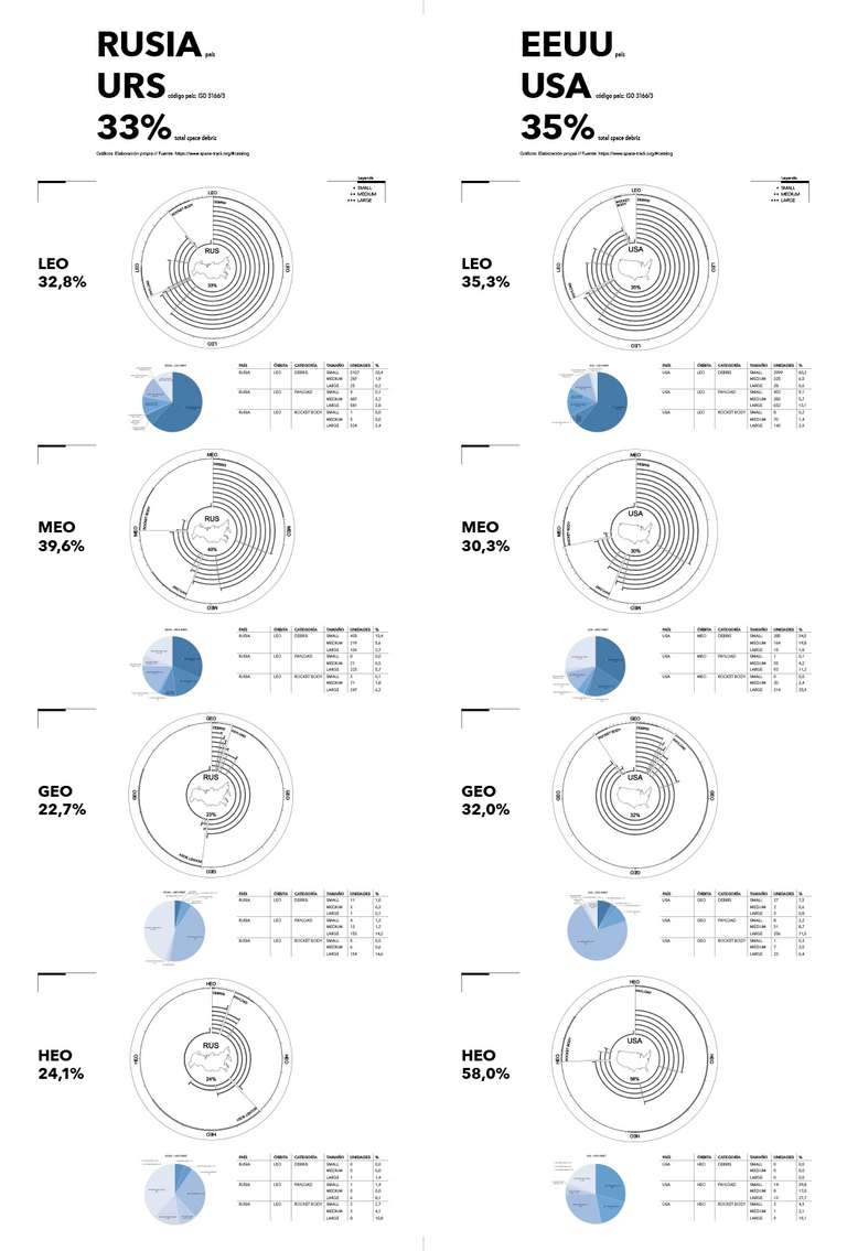 Space Debris :: Waste Constellations is part of an artistic investigation that analyses and highlights the enormous swarm of space debris that revolves around the Earth in its four main orbits. Based on data extracted from scientific sources, it identifies the eleven powers responsible for the exponential accumulation of space debris, classifies and categorises the data, and shows how this constellation of space debris is distributed in the cosmos. A type of pollution, invisible to our eyes, but real and threatening.
