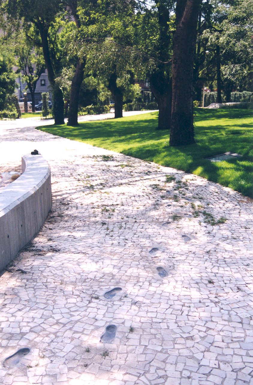 The sculptural intervention The Queen's Memory rescues the historical past of the place where it is located, the Parque Casino de la Reina, built in honor of Queen Isabel de Braganza (1817), in the neighborhood of Lavapiés, Madrid. Formally, the sculptural work is divided into five areas of intervention, distributed in strategic points of the park, according to their significance. On the one hand, we have a series of footprints, made in cast aluminum, representing the steps of the Queen. These prints reflect different actions that Queen Isabel de Braganza could carry out in the park, such as: walking, dancing (sevillanas boleras), contemplation and rest. The four actions cover a wide spectrum of situations that the Queen carried out in these gardens in a sphere ranging from the public or social to the private and intimate, and invite the viewer to recreate these attitudes through the enjoyment of the actual garden.
