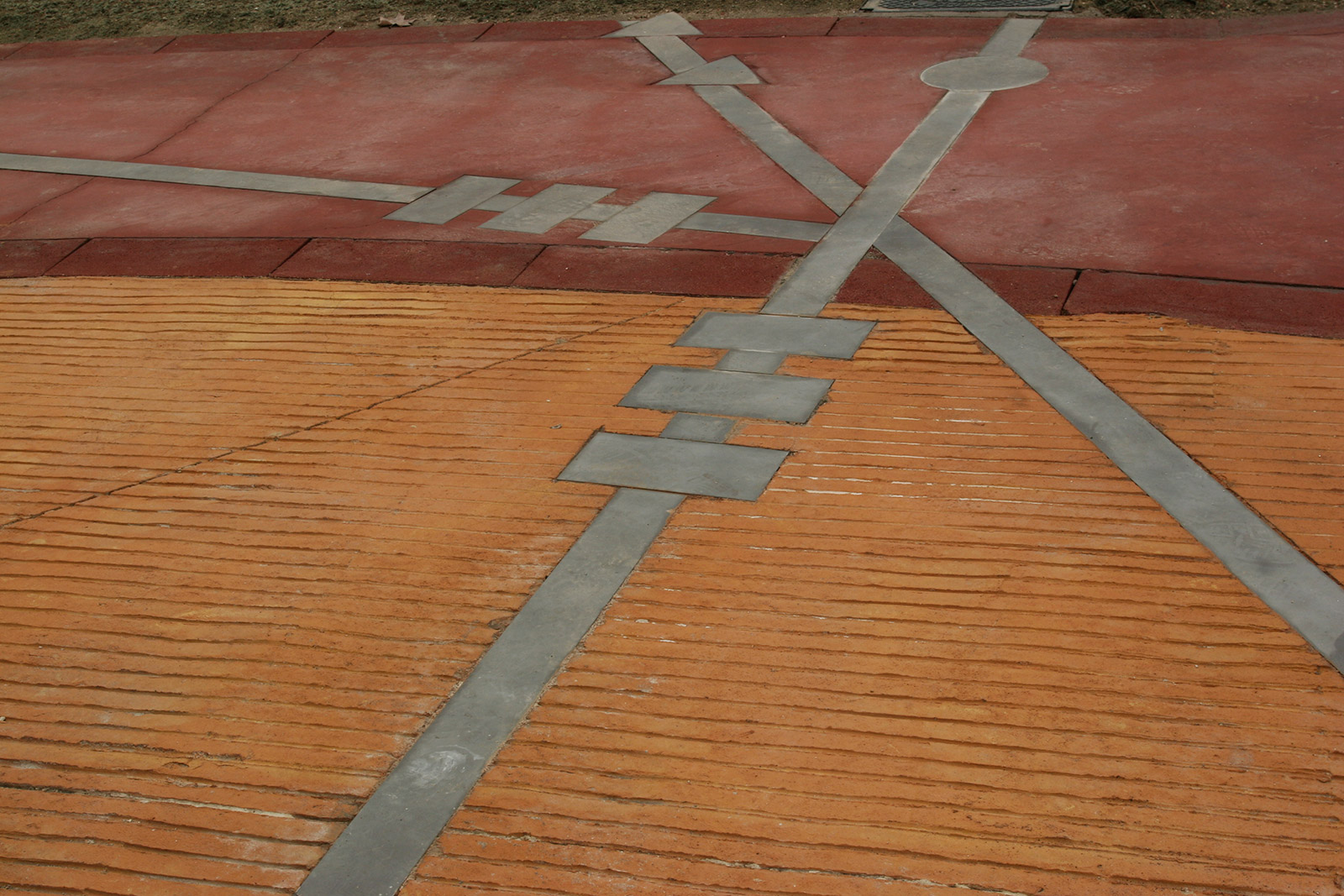 Understanding the park as a large plant fabric, the intervention draws a pattern on the territory, solidified with metallic lines, in an act of inviting the walker to "trace" this scheme with his or her movement, that is, with the act of walking, and to "cut" the plant fabric with the gaze. Thus, by means of the walk, the spectator is subjected to different tracings on the pavement that overlap one another, as in a pattern sheet that superimposes numerous patterns on each other. The drawing rescues the original lines of the drawing of the park and by means of a system of codes, which responds to the rules of industrial and textile pattern-making, creates two zones where the artistic intervention is located. Zone A comprises an approximate area of 3.5 x 4 metres and zone B of 6.5 x 4 metres. The intervention is carried out on the pavement by inlaying stainless steel sheet metal to form a pattern, according to the design of the plans provided in the architectural project.