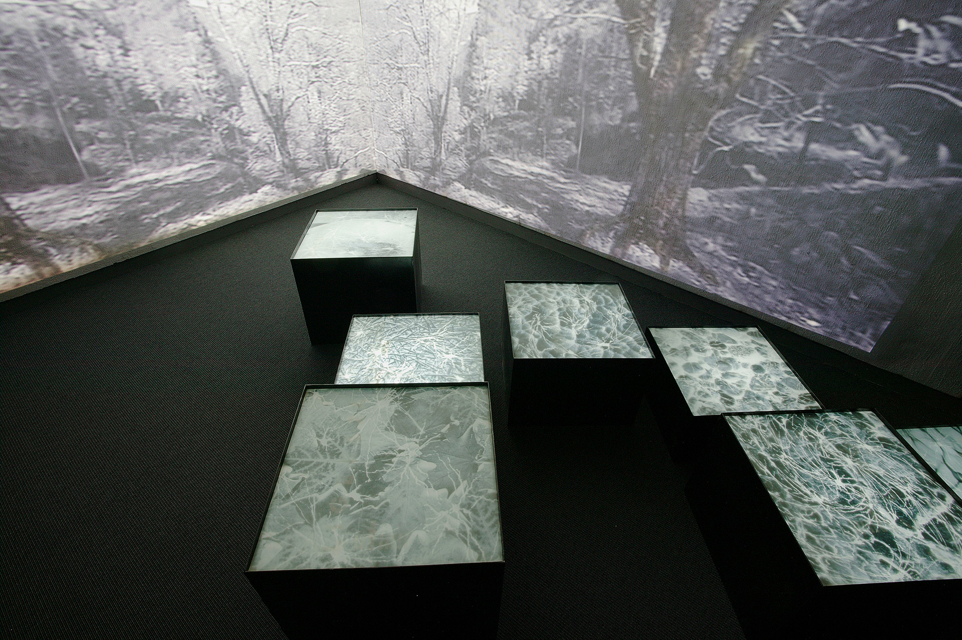 La instalación La noche oscura interpreta los ocho grados que San Juan de la Cruz debía alcanzar en la adquisición de su conocimiento místico. Los grados, simbolizados en ocho cubos negros representan a través de distintas metáforas visuales los siguientes estados: desasosiego, búsqueda, necesidad de obrar, dominación de uno mismo, proximidad-vislumbramiento, cercanía, consecución y regreso a la realidad. Dentro de cada cubo existe un temporizador de luz con tiempos muy lentos y alternados, de tal manera que resulta imposible visualizar la instalación por completo, ya sea a plena luz o en penumbra absoluta. La luz simboliza esa luz interna tan importante y necesaria en la consecución del conocimiento místico. La instalación adquiere así un aire misterioso y vivo que atrapa al espectador en la comprensión de la secuencia y de las imágenes que nos muestra.