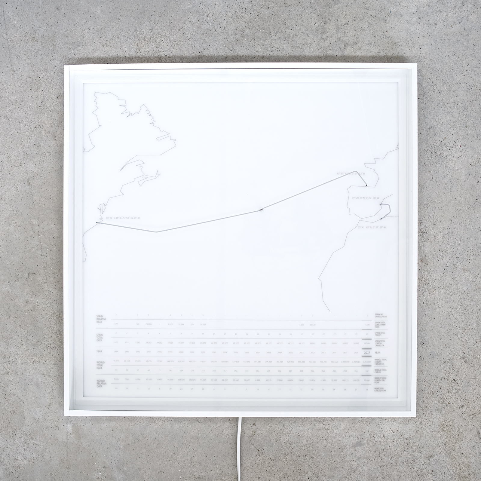 Liquid Mapping: Connected to..., representa la cartografía de cómo está conectada la geografía española con el resto del planeta a través del cableado submarino, las autopistas de información del siglo XXI. El 99% del tráfico de Internet circula a través de una red de cables, invisible a nuestros ojos, que teje el fondo marino de los océanos y que permite la trasmisión de datos en tiempo real. Como una red de arterias submarinas, este mapeado acuático, imperceptible a nuestra mirada, funciona como las grandes autopistas de información del siglo XXI. Estas arterias están construidas por finos hilos de vidrio capaces de transportar grandes paquetes de información.