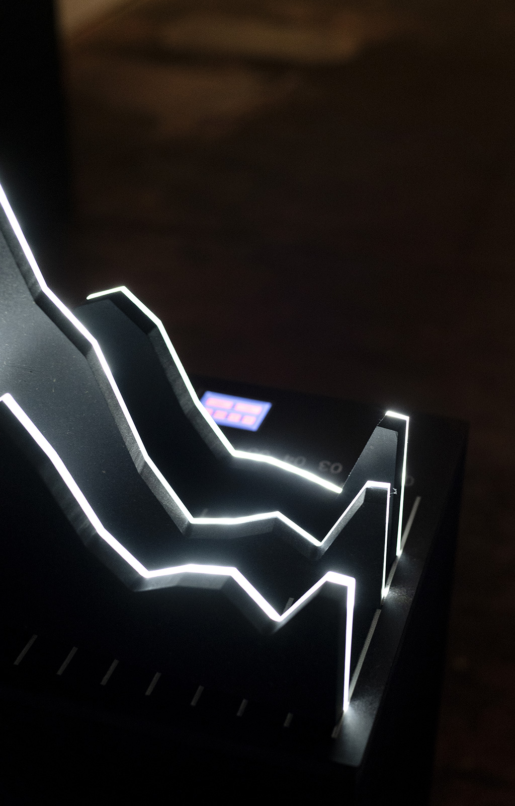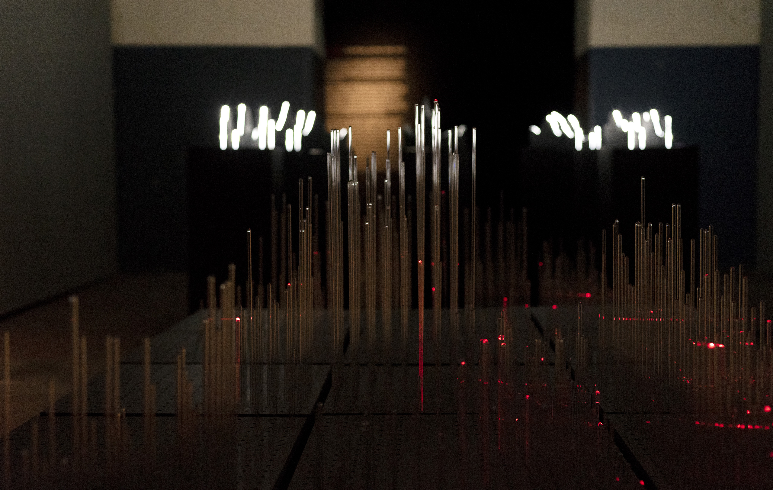 En el espacio central, se ubica [MAFD] :: Planisphere y [MAFD] :: Graphic Atril (2008-2017), el núcleo principal del proyecto; una instalación escultórica, lumínica e interactiva, que recoge y visualiza tridimensionalmente los datos de los incendios activos en la pasada década. Un dispositivo matricial, concebido como una pantalla de pixeles tridimensional donde representar, por la reflexión de la luz en el vidrio, la evolución dinámica de incendios forestales en el marco temporal investigado. A este núcleo central, se conectan diez estructuras que visibilizan los datos y gráficos mensuales, pertenecientes a cada año tratado, en base a tres parámetros: área quemada (burned area), emisiones de CO2, y número de fuegos (fire count). El espectador puede interactuar, mediante una pantalla táctil, con el núcleo de la instalación, para escoger la evolución de fuegos, en un año concreto.