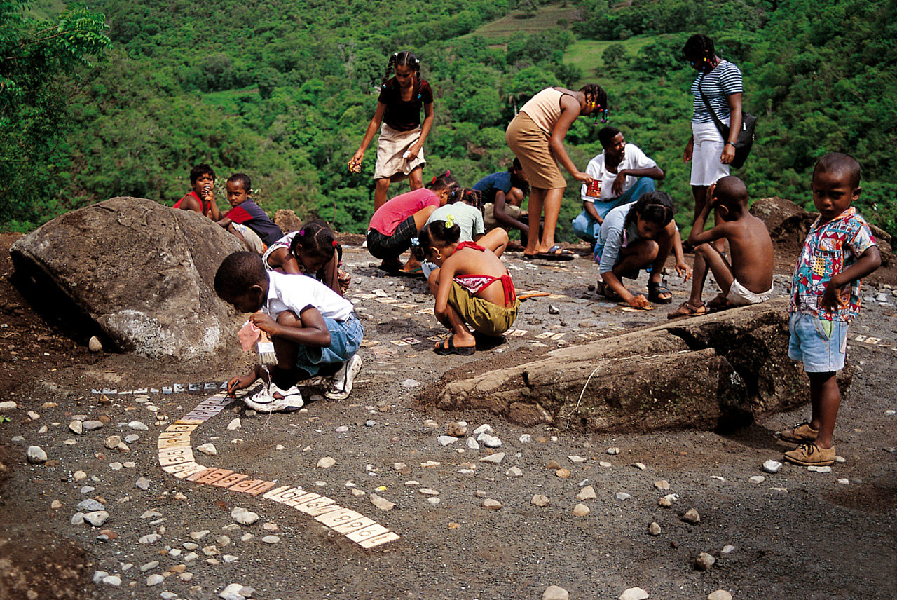Mapa Genético genera una cartografía demográfica de la República Dominicana, donde las líneas principales se corresponden con trazados reales de la red de carreteras del país y están articuladas en base a las fechas de nacimiento de todos los miembros de la comunidad de Parra, en San José de Ocoa, República Dominicana. Al igual que un camino se entiende como una arteria en el organismo vivo de la isla, Mapa Genético supone ese árbol genealógico de esta comunidad, reflejando el censo de la población existente. Las fechas de nacimiento están realizadas en resina de poliéster coloreada según la paleta visual de las viviendas típicas de la isla y se encuentran embutidas en el pavimento como un empedrado tradicional. Se han aprovechado las rocas existentes en la ubicación elegida, que funcionan como asientos a la vez que nos remiten metafóricamente a las montañas y lomas propias de la isla. El concepto de lugar al igual que el de recorrido está implícito en toda la obra.