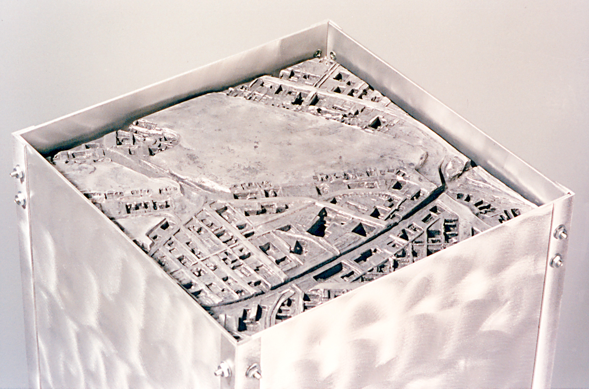 La serie Suburbia, Freeway y Port (Suburbio, Autopista y Puerto) nos remite a emplazamientos reales de la ciudad cuestionando la imagen habitual que tenemos de estos lugares. Por otro lado, las obras Centripetal Implosion, the Freeway (17,SW), (Implosión Centrípeta, la Autopista) y Absent Freway (17, SW), (Autopista Ausente), enfrentan el espectador a una percepción de la ciudad a la que no está acostumbrado, el espacio negativo, esto es, la no-ciudad.
