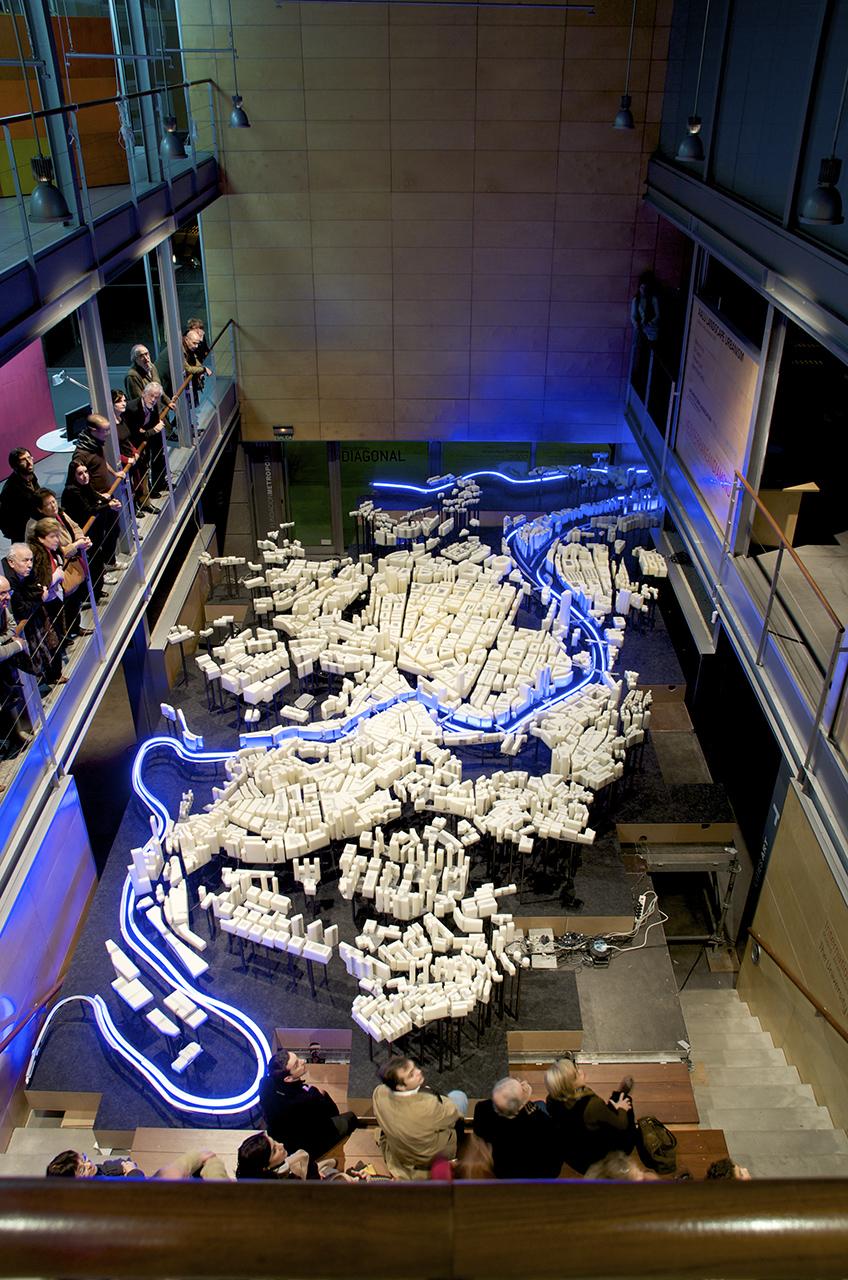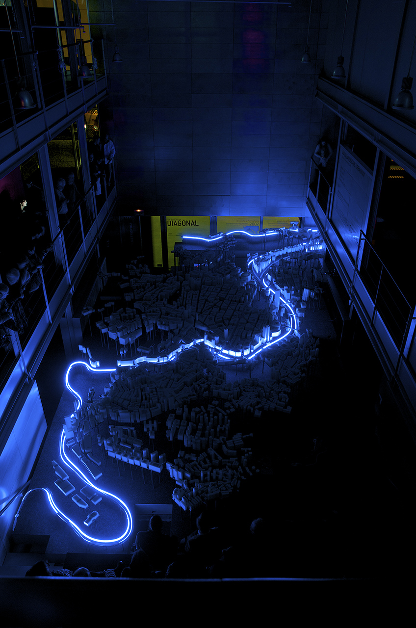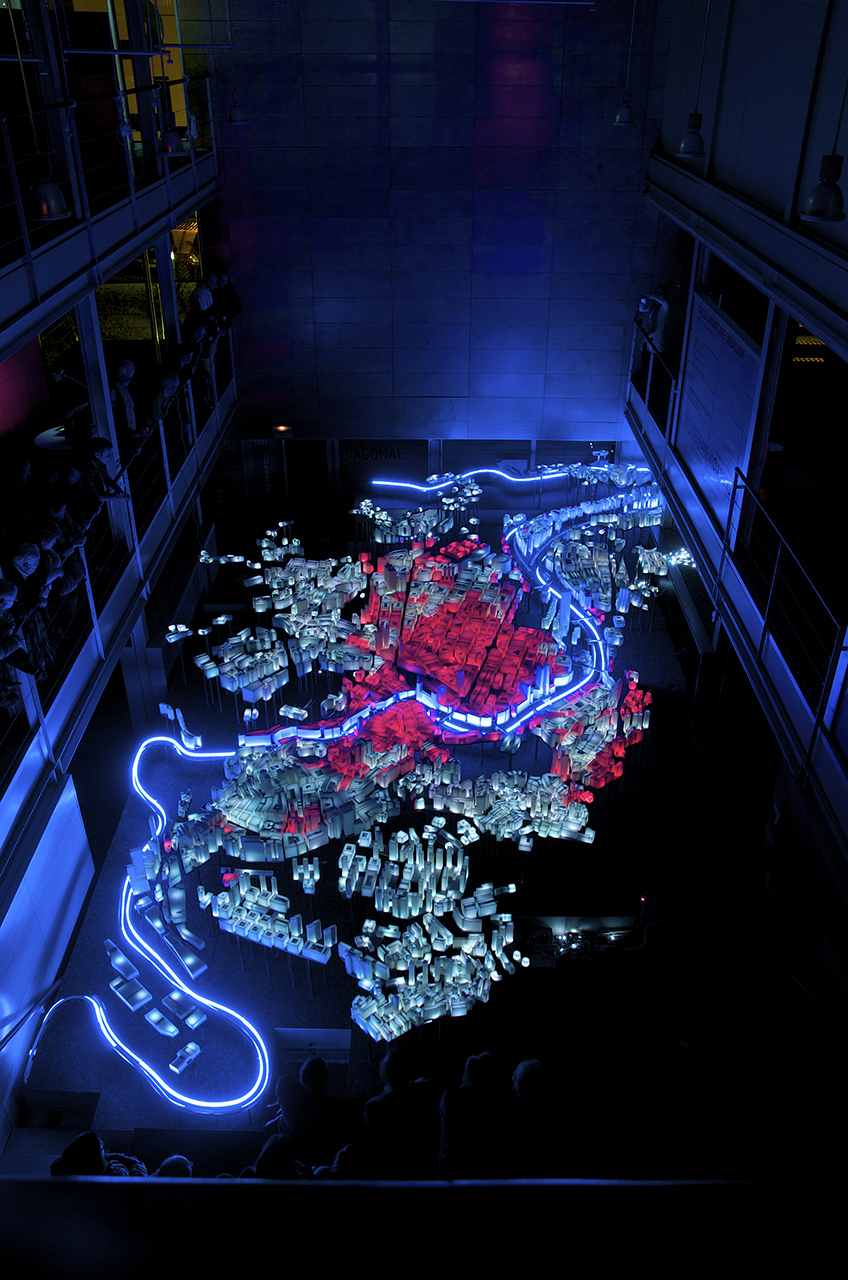 AlhóndigaBilbao. “Trans/formaciones. La ciudad: Espacios y tiempos. Bilbao Guggenheim ++. Shanghai World Expo 2010”, Instalación escultórica “Piel de luz”, Bilbao, 22/02/2011 al 01/05/2011