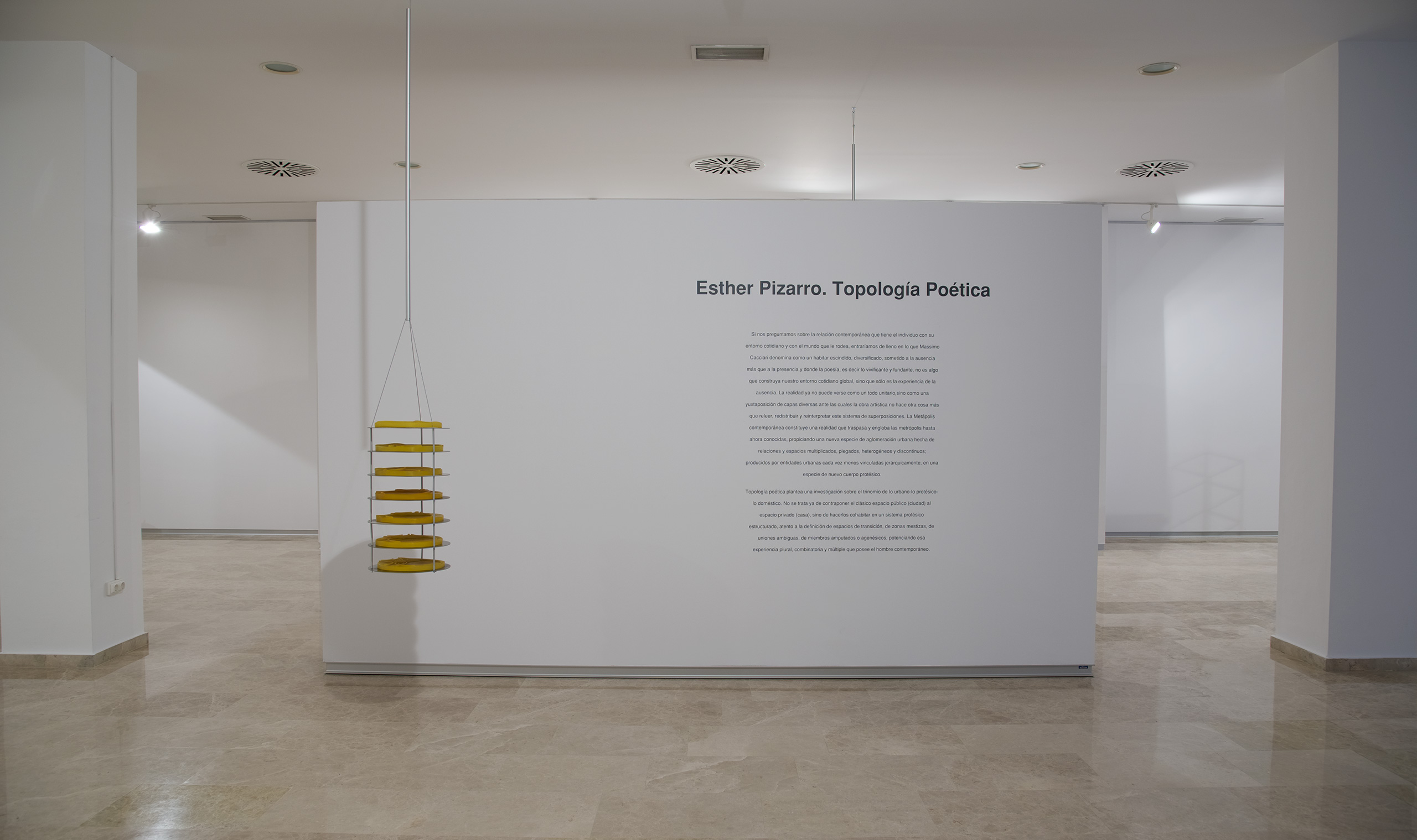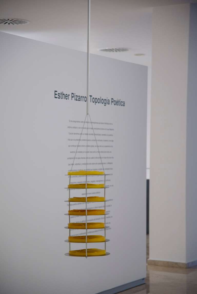 La exposición que Esther Pizarro nos enseña de su trabajo en la Sala de Exposiciones “Universitas” de la Universidad Miguel Hernández, sin duda se trata de un trabajo delicado, elegante, sutil, donde tanto obra como lugar expositivo se entrelazan en una narrativa suave y melódica para construir un silente poemario cargado de puntuales llamadas al regocijo, al ensimismamiento, a la pausa. Con ese resultado, Esther Pizarro convoca así un diálogo íntimo, privado y emotivo entre toda la confluencia que se da cita en todo proceso expositivo. La disposición y elección de las puntuales ocupaciones de las obras en la sala representa la secuencia musical en la composición de su poemario, espacio arquitectónico, volúmenes, escalas, proporciones y el efecto liviano y etéreo que parecen mostrar sus trabajos junto a la sensibilidad que demandan al espectador, logra un encuentro formal y conmotivo de extraordinaria elegancia.