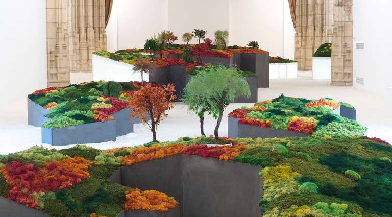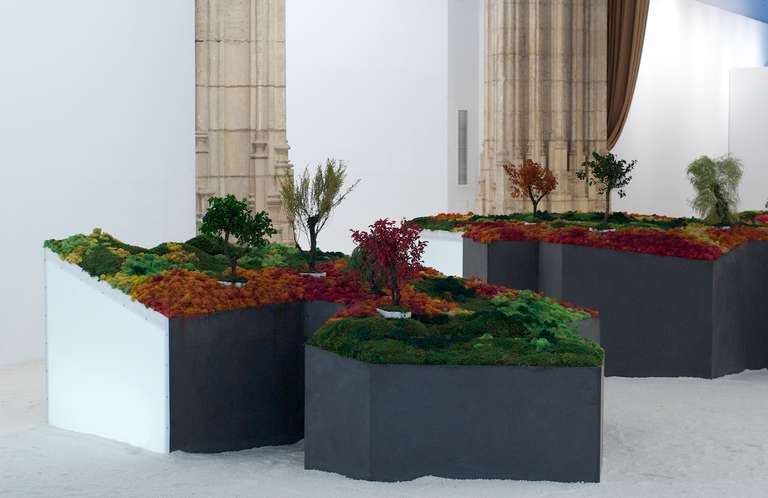 La intervención de Esther Pizarro explora este microcosmos sobre el mapa de Japón, que se aborda como una país de islas o islado, respetando la norma según la cual el shakkei, o enmarcado es la primera condición para que el jardín exista como tal. Así, la división política que establece las ocho regiones y las 47 prefecturas, junto con las más de seis mil islas que componen el archipiélago nipón, está simbólicamente representada en las construcciones hechas por la artista, que articula el camino de la filosofía, en virtud del wabi-shabi que anula las oposiciones, entendiendo que todo está contenido en todo.