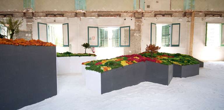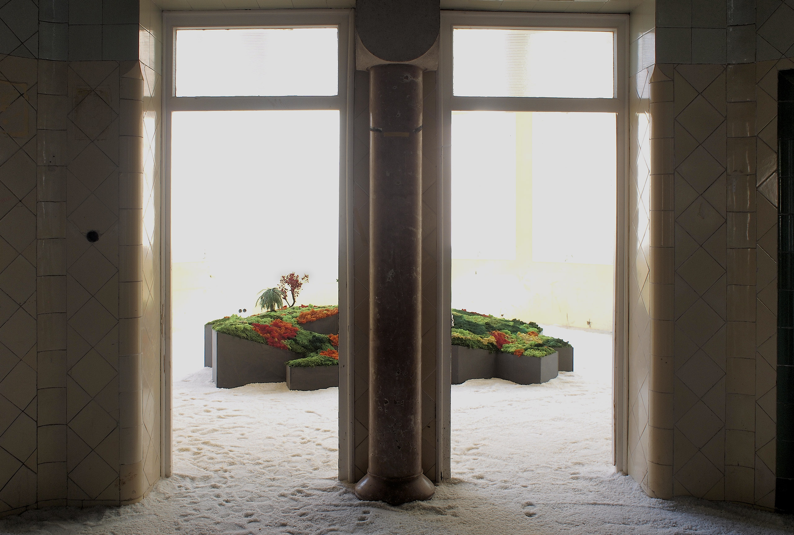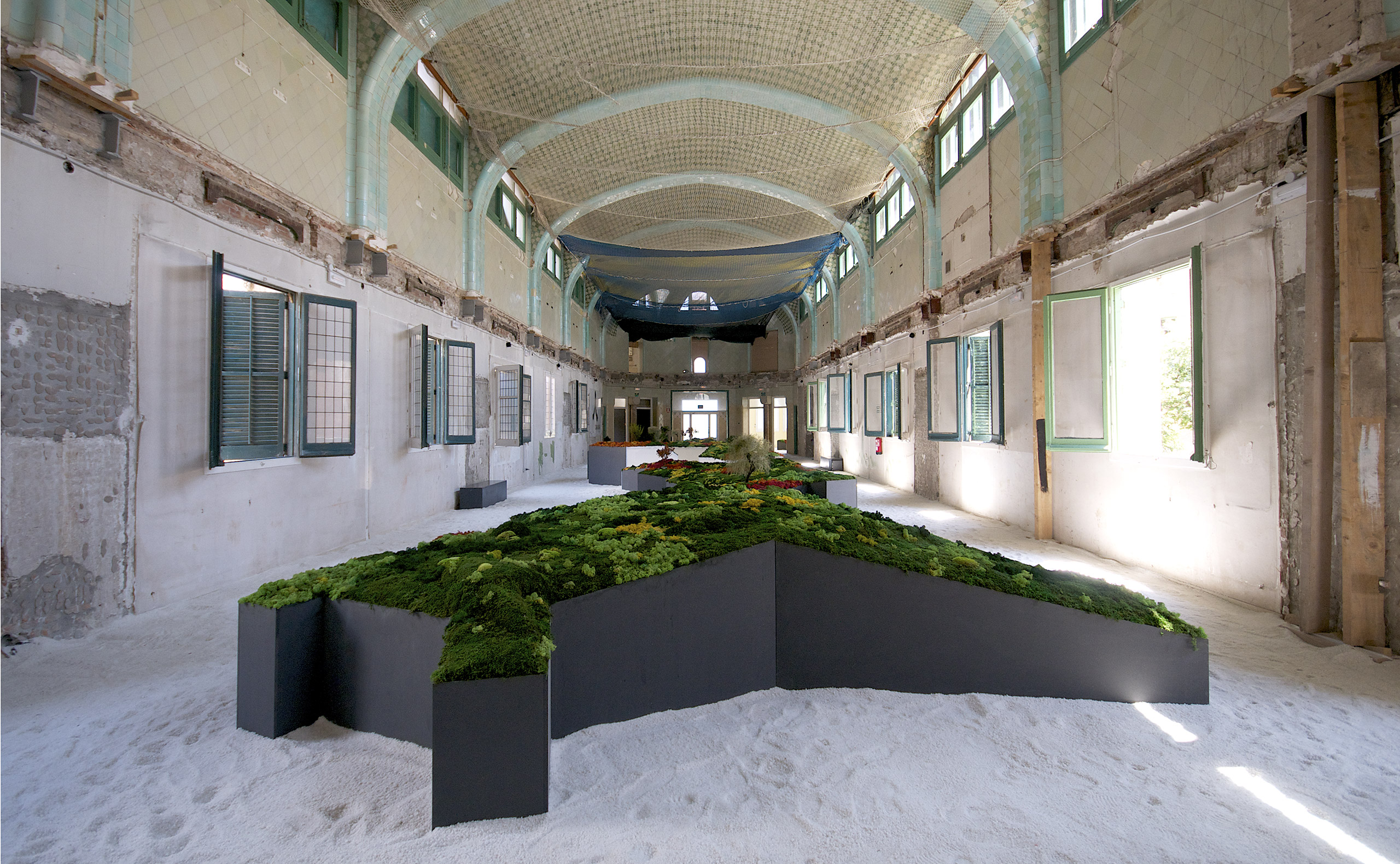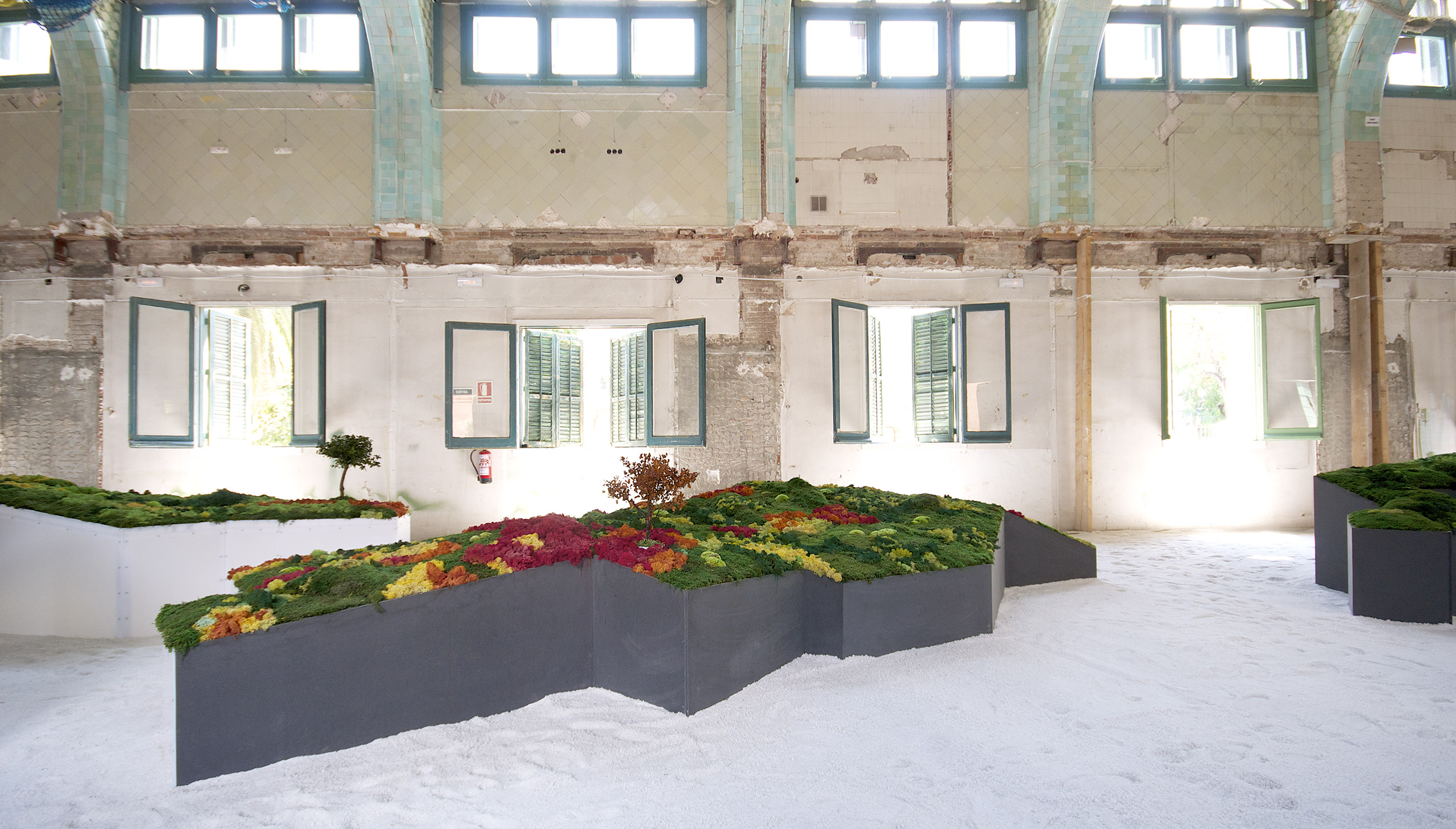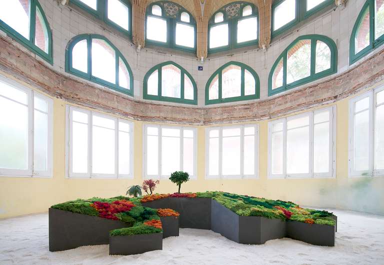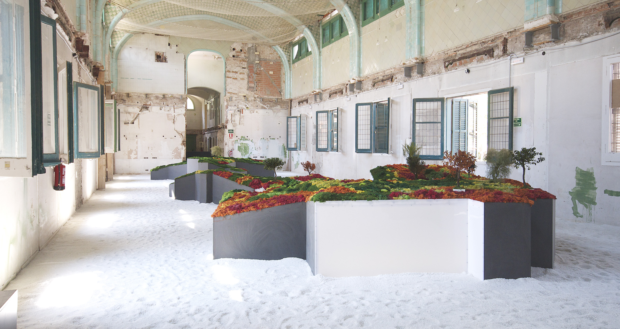 Este proyecto expositivo consta de una instalación única realizada por Esther Pizarro y comisariado por Menene Gras Balaguer. En base al archipiélago que configura el país nipón, se ha diseñado un jardín japonés que trata de conectar con los valores estéticos universales de esta cultura. Un jardín japonés es un espacio que invita a la contemplación imitando la naturaleza que trata de reproducir en miniatura, pero a la vez compartiendo códigos estéticos con la caligrafía, el arte y la tradición. Todos los componentes que forman parte del jardín japonés importan un simbolismo y unas normas que informan sobre el significado de la disposición de todos y cada uno de ellos, como si fueran los elementos de una escritura gráfica con una identidad cultural definida. Este proyecto que han producido Matadero Madrid y Casa Asia delimita el espacio del jardín sobre la planta territorial que ocupa el país. Es un jardín seco rodeado de un mar de sal, en el que las ocho regiones se han convertido en islas, al abrir caminos entre ellas para que el público pueda desplazarse como por el interior de un organismo vivo, a imagen de la naturaleza en cada una de sus representaciones.