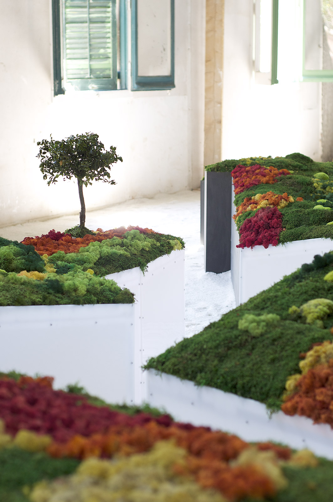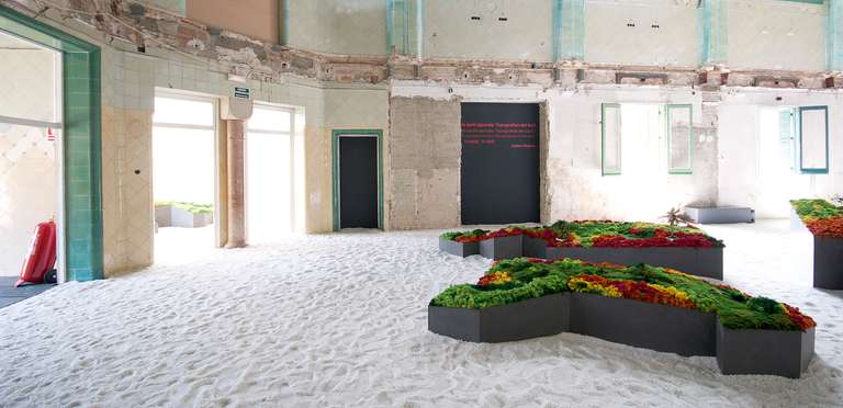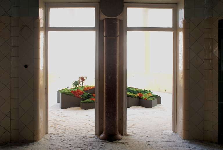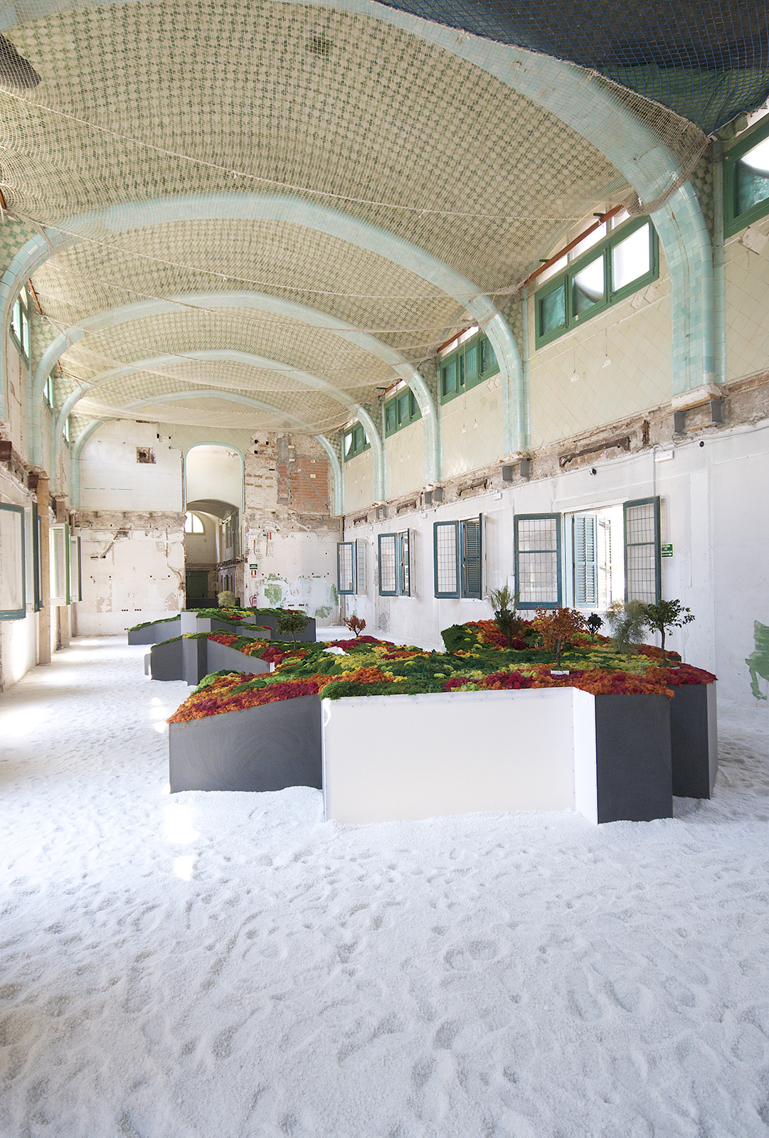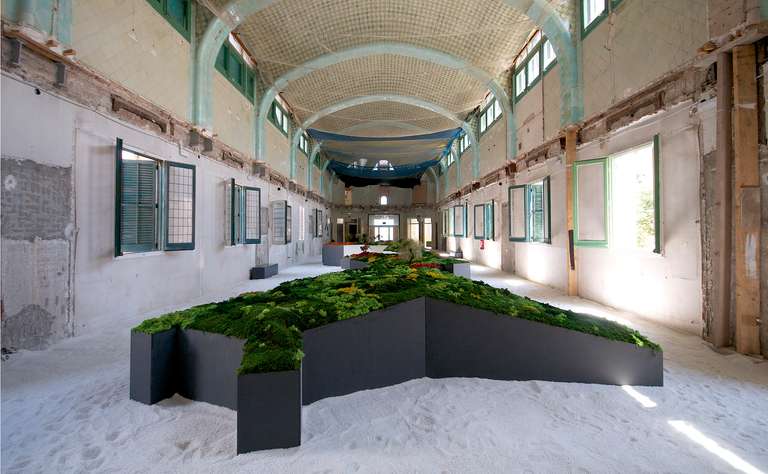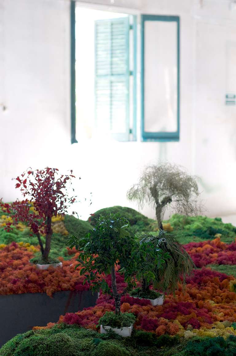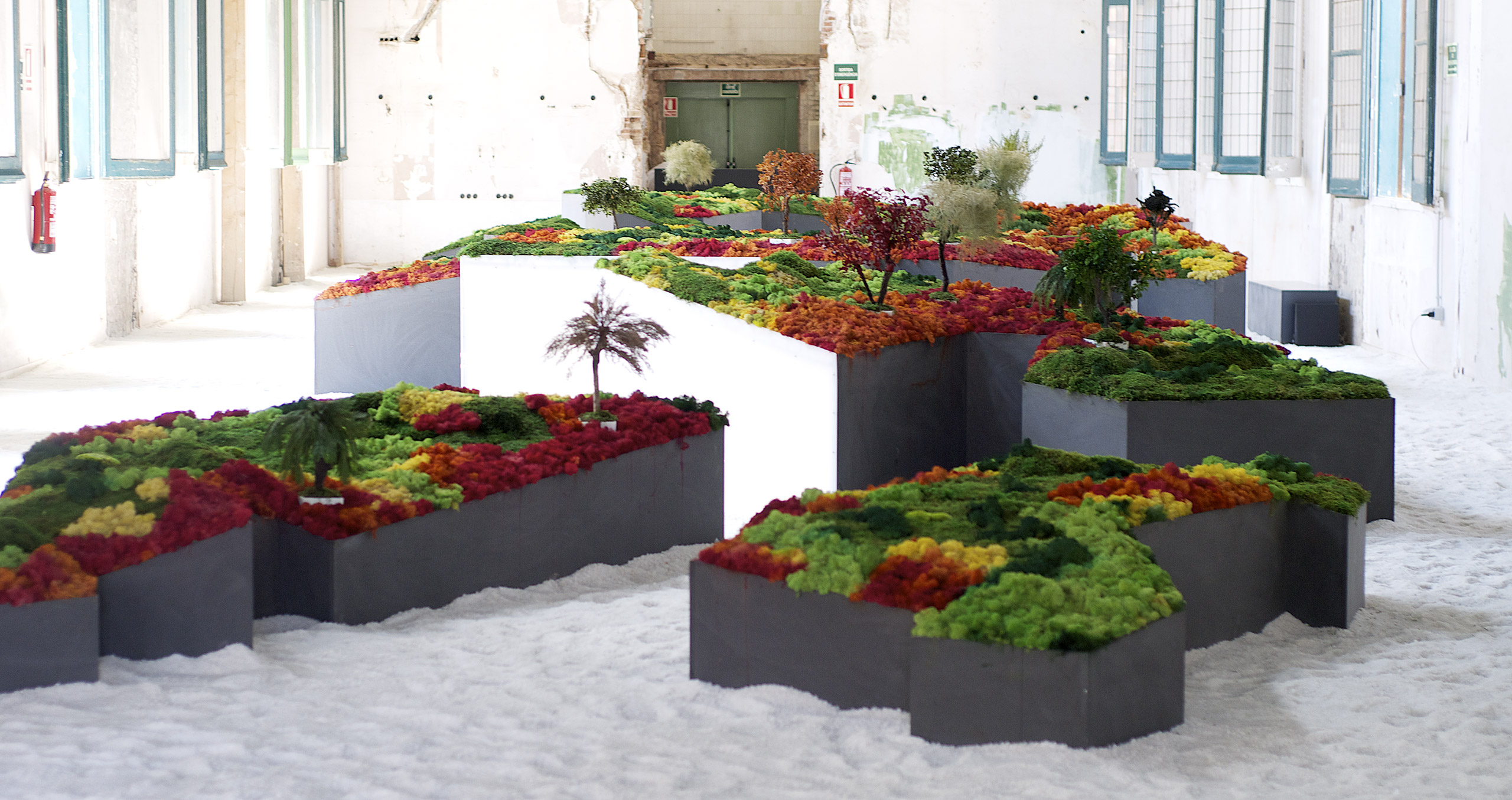 Este proyecto expositivo consta de una instalación única realizada por Esther Pizarro y comisariado por Menene Gras Balaguer. En base al archipiélago que configura el país nipón, se ha diseñado un jardín japonés que trata de conectar con los valores estéticos universales de esta cultura. Un jardín japonés es un espacio que invita a la contemplación imitando la naturaleza que trata de reproducir en miniatura, pero a la vez compartiendo códigos estéticos con la caligrafía, el arte y la tradición. Todos los componentes que forman parte del jardín japonés importan un simbolismo y unas normas que informan sobre el significado de la disposición de todos y cada uno de ellos, como si fueran los elementos de una escritura gráfica con una identidad cultural definida. Este proyecto que han producido Matadero Madrid y Casa Asia delimita el espacio del jardín sobre la planta territorial que ocupa el país. Es un jardín seco rodeado de un mar de sal, en el que las ocho regiones se han convertido en islas, al abrir caminos entre ellas para que el público pueda desplazarse como por el interior de un organismo vivo, a imagen de la naturaleza en cada una de sus representaciones.
